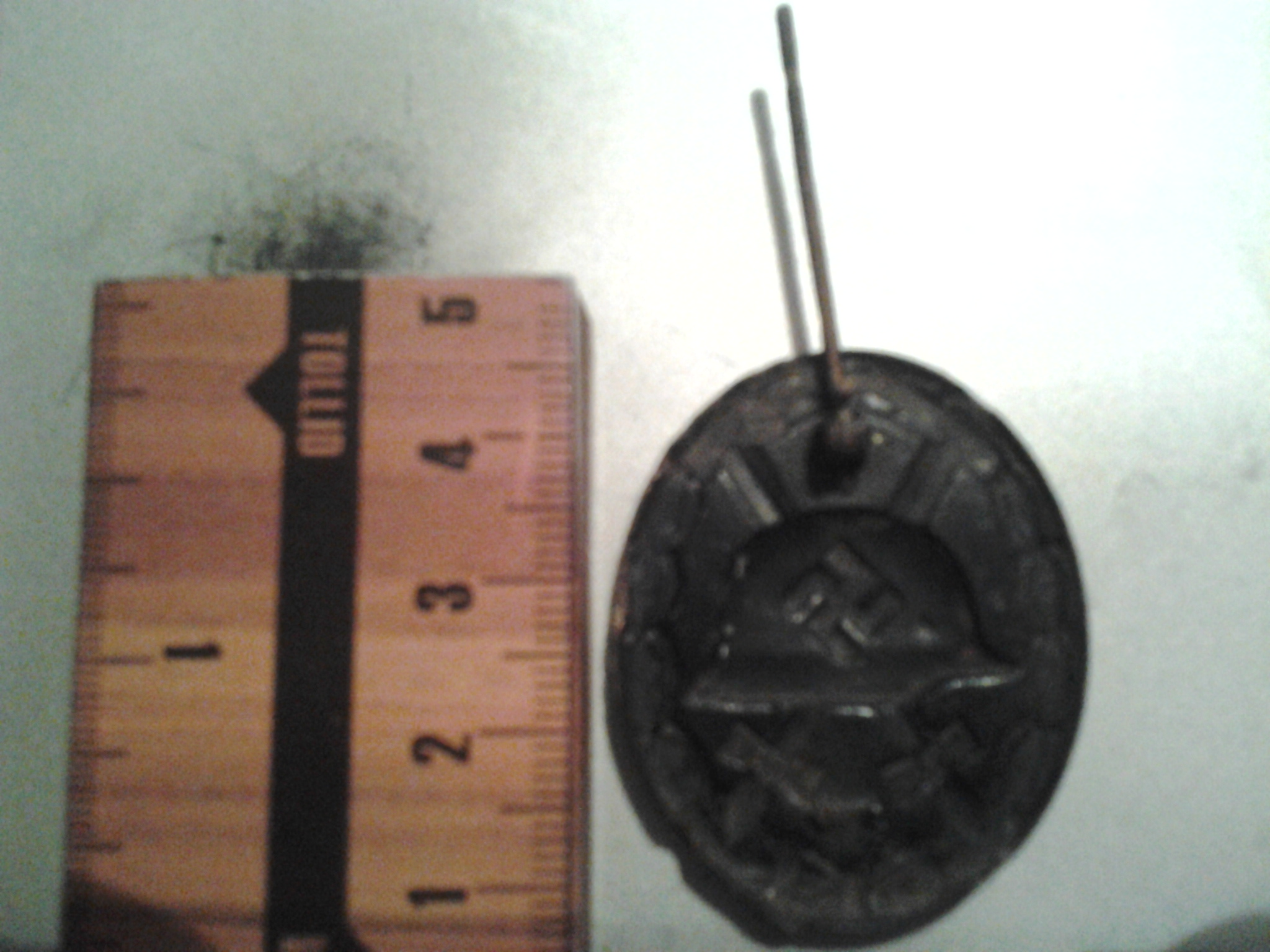 ) on kriipsud nende all mõlemal . haavatumärgil markeringuid taga pole ning kinnitus aas on murdunud ning murtud kohapeal on kergelt vaskne rooste närimisjälgi on märgil siin seal peal... Loodan et kirjeldus väga segane pole