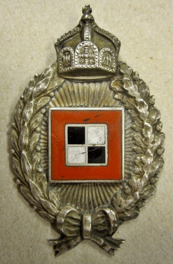 The Prussian Observers Badge, like the Pilot's Badge, the Observer's Badge was not strictly an achievement award. Observers training was longer and more rigorous than pilot training, so the Observer's Badge carried a status somewhat akin to an achievement award. It features an enameled Prussian "signal flag" in the center, surrounded by a red border, and fixed to abackground piece with a "starburst" design with a spray of laurels and oakleaves. The Prussian crown surmounts the design. German aviation obervers were almost always officers while during the early war years, pilot were frequently enlisted personnnel and ordered where to go and how to fly by the officer.