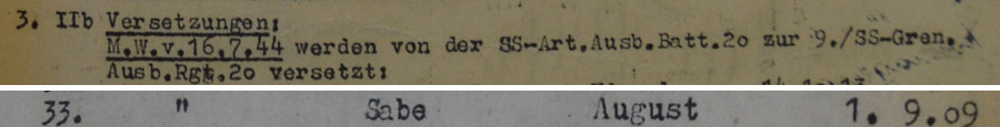 7. juuli päevakäsu järgi oli Sabbe SS-Frw.O.Kan. - (reamees (suurtükivägi) - SS-Freiwilligen-Oberkanonier (SS-Frw.O.Kan.)) auastmes suutükiväe tagavarapatarei koosseisus.