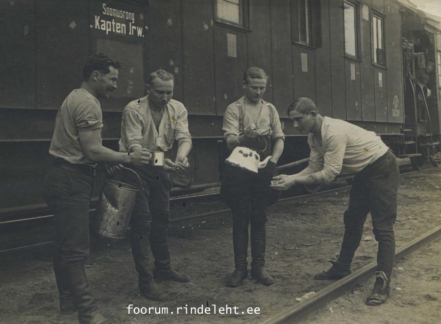Lepassaarest Petseri poole, R. Iste oli valves, metsa taga viskas üles suitsu (varahommikul), näeb vaguneid tulemas, kui annan alarmi on juba liiga hilja – lasi ühe lasu ja teine vagun sai pihta, rong jäi seisma. Umbes 10 minuti pärast haagiti kaks vagunit lahti ja jäeti maha, ülejäänud rong põgenes. Meie mehed läksid ligi. Läksid edasi Pihkva alla, umbes 50 meest läksid Pihkvat vallutama. Võeti sõbralikult vastu. Naised ja lapsed tahtsid süüa, teine rong tõi süüa.