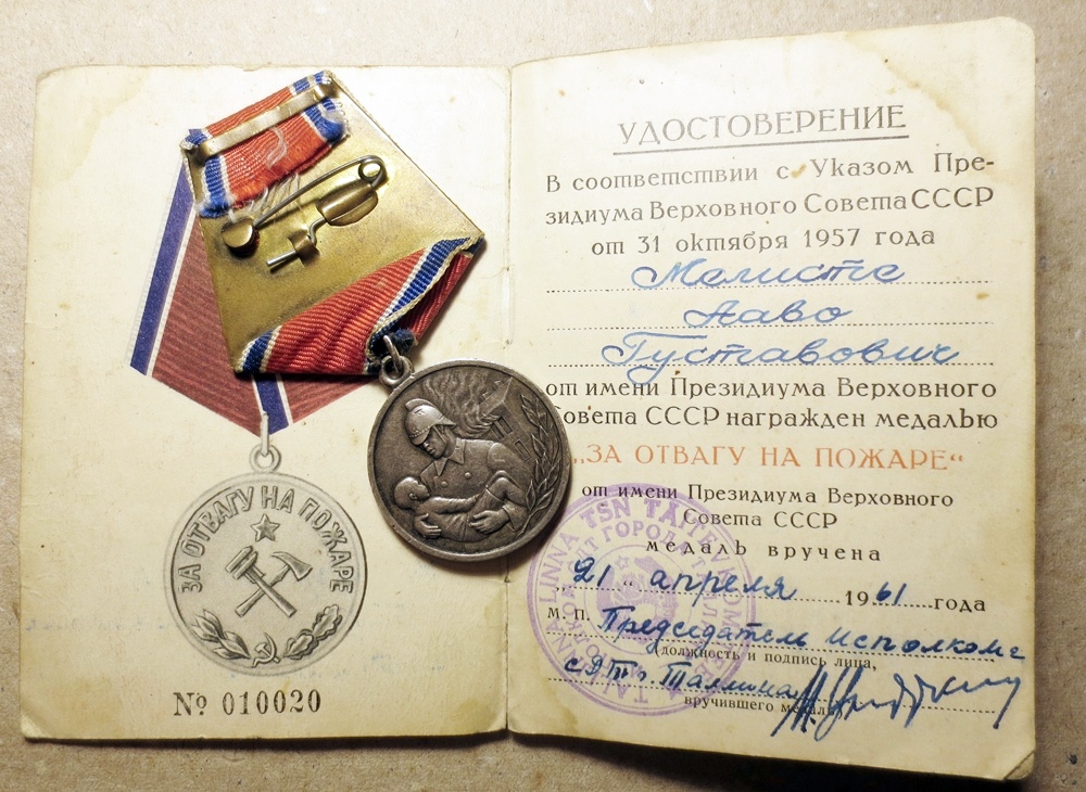 Tuntum neist, mida anti inimeste päästmise ja isikliku vapruse eest tulekahju kustutamisel oli 31. Oktoobril 1957 asutatud medal ’’Vapruse eest tulekahjul’’