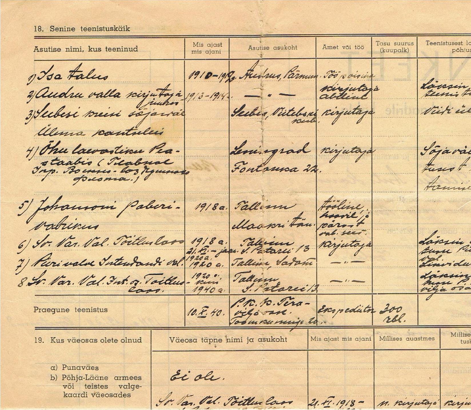 Leidsin 1941.aasta ankeedi,kus vanavanaisa peab kommunistidele selgitama oma minevikku.Seal siis kirjas et ta teenis Ôhulaevastiku Peastaabis kirjutajana.Kui keegi oskab midagi pagunitelt välja lugeda,oleks tänulik.