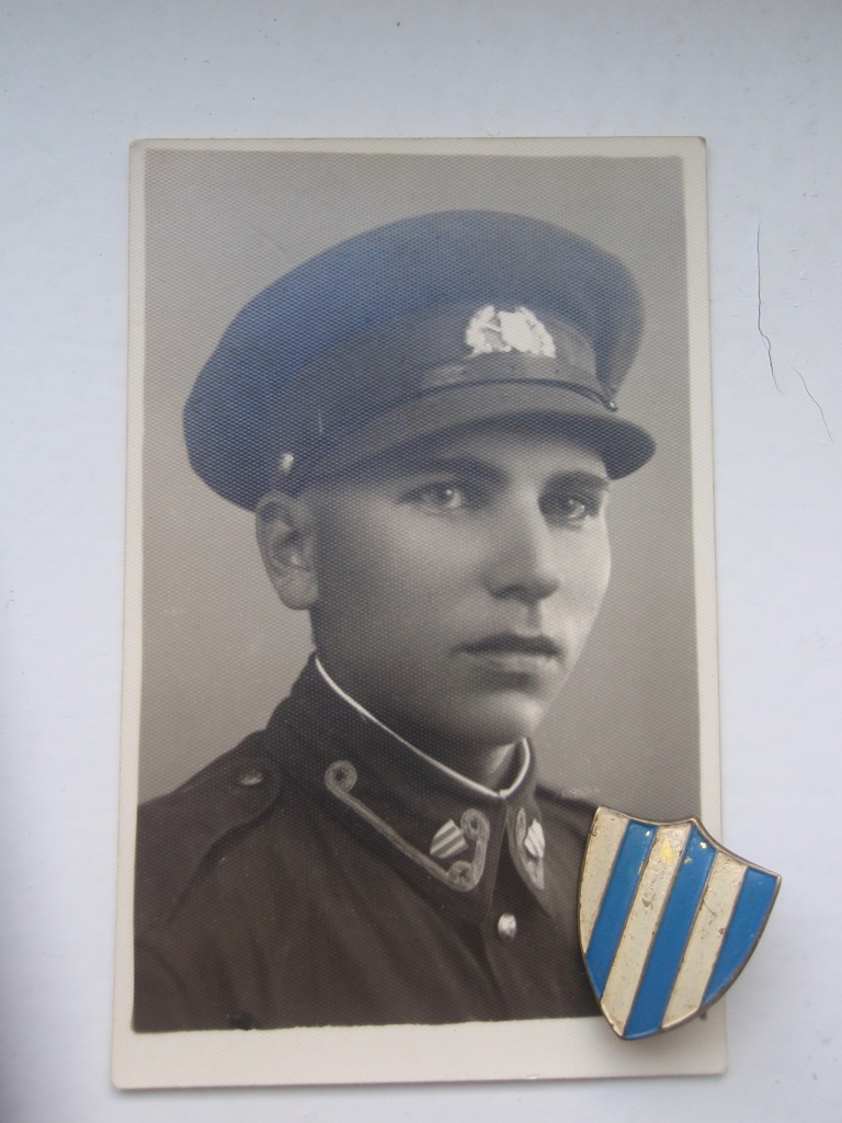 Sineli lõkmed, m26 kaheosaline mütsimärk (sinine=jalavägi), m36 riidest ohvitseri tunnus (teistsugune töö, kui tavaliselt), m36 metallist ohvitseri tunnus (keegi on keti külge aretanud), tsaariaegsed vormitunnused nr. 6 või 9 (kanti ka VS ajal) jne...