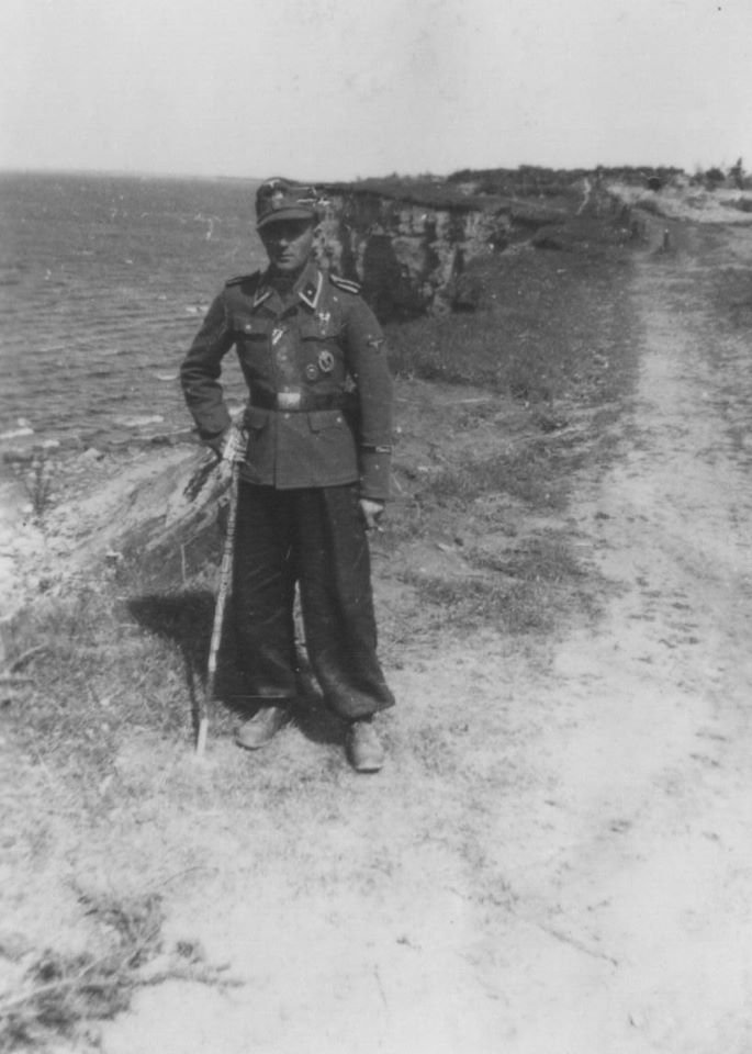 Rootslasest sõjakirjasaatja ϟϟ - Ustuf. Hans-Caspar Kreuger koos oma autojuhiga uudistamas Narva varemeid ...