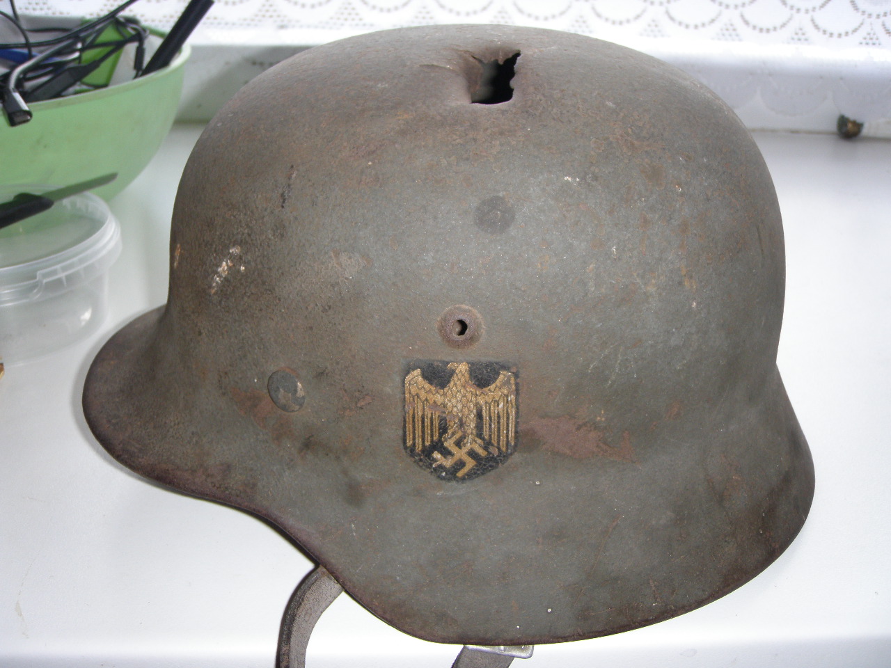 saadud siis täna selline saksa kiiver kogusse. oli olnud kõik need aastad maja laka peal Järvamaal. kiivril siis kandja nimi peal ja 167nr. whermacti dekaal ilusasti näha. panen siia 1 pildi, ölejäänud saksa varustuse all.