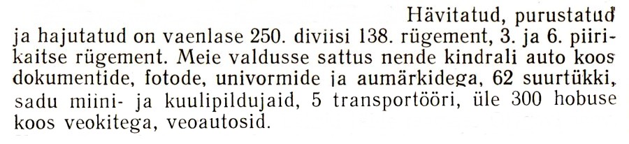 Ei tea, kellest on viga, 258.diviisi 130.rügement, alguse saanud aga seda on hiljemgi korduvalt rõhutatud. Näiteks ka V.Kallion 20.eesti SS-diviisi suurtükirügemendist. Tegelikult peab olema 285.julgestusdiviisi 113.julgestusrügement. Ja mina küll ei julge kogu hävitatud rügemendiks lugeda 2-3 purukslastut veoautot Kõverikul.