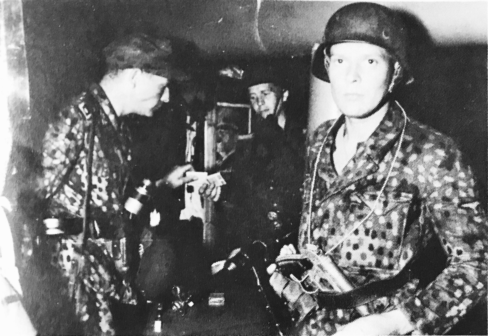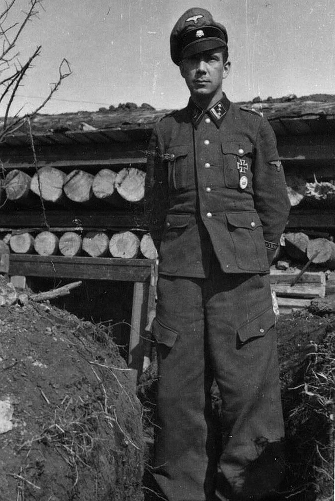 ϟϟ-Hauptsturmführer (hilisem Obersturmbannführer) der Reserve Carl-Heinz Frühauf Narva võitlusruumis. Pöörake tähelepanu põnevatele püksitaskutele ja punkrilae tõsidusele ...