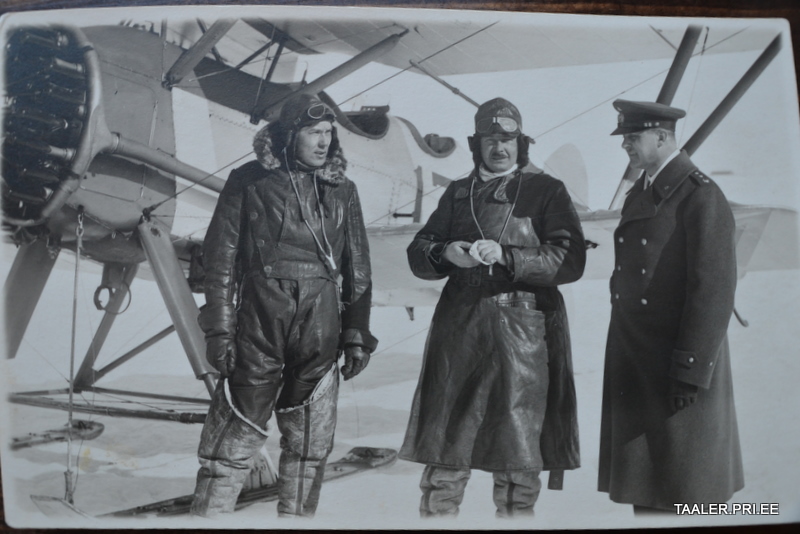 Esimesel fotol vasakul on Reissar, keskel Tomberg, vormis mees tundub vähe tuttava näoga, aga ei ole kindel. Taustal seisab Siskin, millega ilmselt Reissar ja Tomberg just lendamast tulid. Kus pilt tehtud - vaja kolmas mees ära tunda, kes neid vastu võtab.