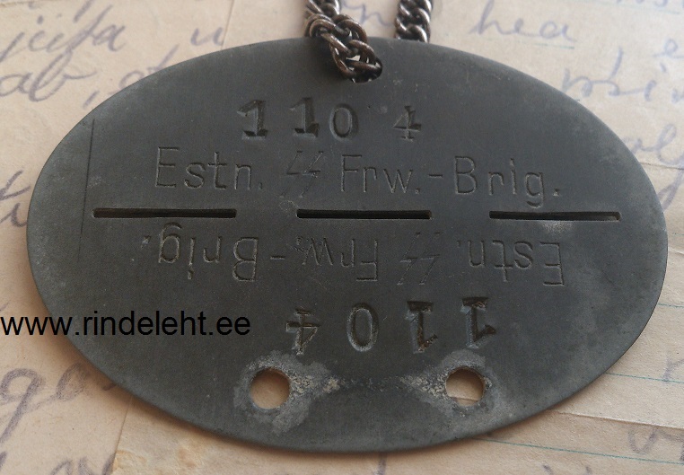 SS-sturmmann Enno Männiku (2.11.1926-4.5.1944) erkennungsmarke ja kirjad.
