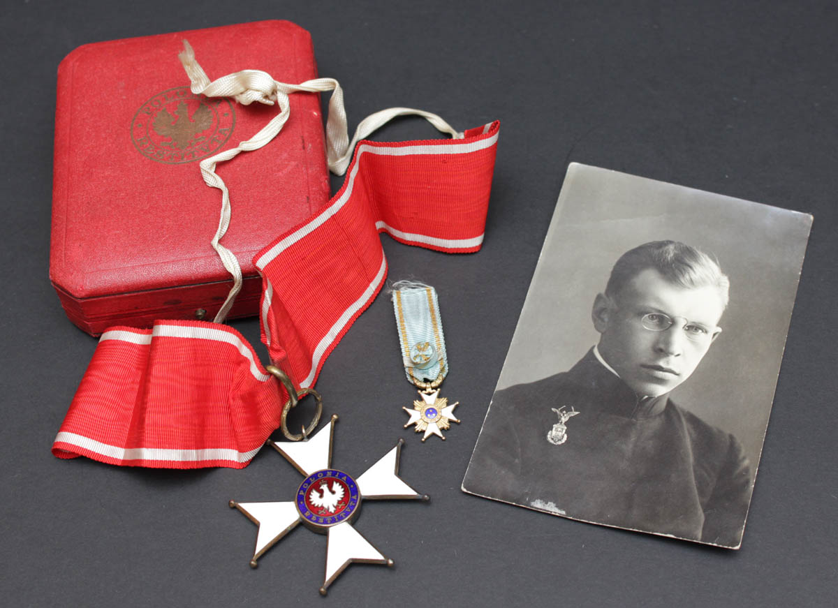 Kolonel Friedrich Olbrei Polonia Restituta III klassi orden (Poola) ja Kolme Tähe ordeni IV klassi miniatuur (Läti).