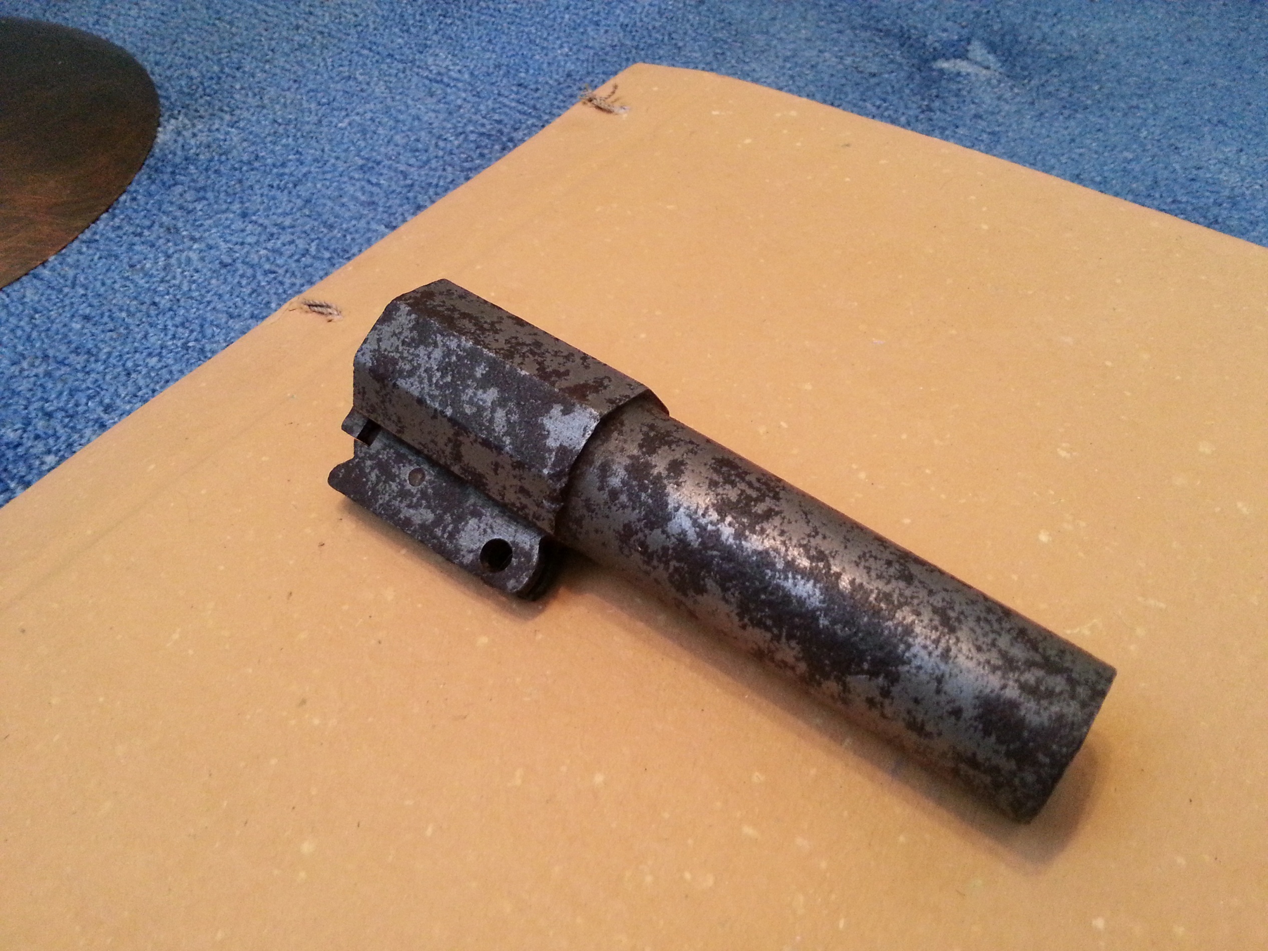 Vene raketipüstoli raud, kestaheitja liigub ilusti, aastaks loen välja 1944. Roosteplekid pole sügavad, nokitsedes saab viisaka detaili. Parema külje kandi peal kerge defekt. Küsiks 35 raha.