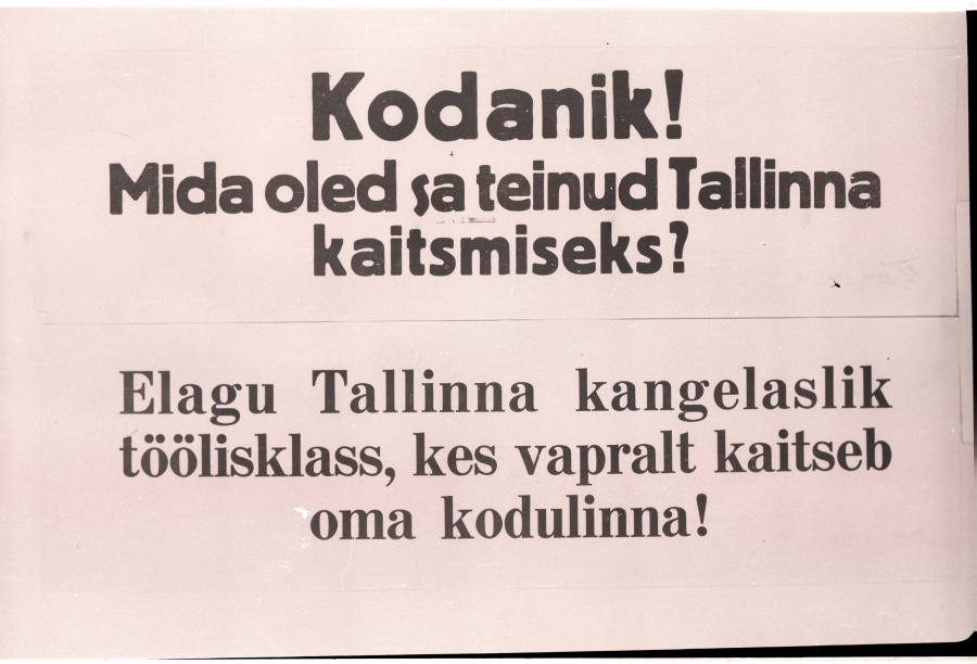 Kuigi Nõukogude võimuletulek Eestis sündis ligi aasta tagasi sõja algusest arvates, Tallinna kindlustamise ettevalmistusi siiski kuskil ei ilmnenud. Punaväe juhatus algas Tallinna kaitset korral­dama alles juuli algusel 1941. Propaganda kuulutas Tallinna äravöitmatuks muutmist kolme kindlustusvööndiga. Seda hilist kindlustustööde algust tuleb seletada kas bolševlstliku järjekindlusena või arvati Tallinna olevat sügavas tagalas. Värsked võimud ju propagee­risid igal võimalikul juhul, et nemad on päästnud Eesti sõjast. | Ei olnud ju siis otstarbekohane sääraste töödega rahvale silmade ette manada võimalikku sõja tulekut. Loomulikum aga on, et Tallinna kaitse loeti tagatud olevat kui eelpostid on kindlad. Ja nii jätka­ti Saaremaa,Hiiumaa ja Osmussaare kindlustamist ning ehitati välja sõjalist baasi Paldiskis.