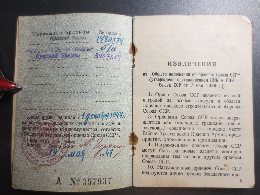 Leitnant Artur Maripuu, 23. Suurtükipolk, 7. Eesti Laskurdiviis. Punatäht vahemikku 1480*** sedakorda siis 1 480 334, mis küll hetkel veel puudu on. Komplektis on ka ilmselt väljateenitud aastate eest saadud ilma numbrita Lahinguteenete medal ja Punatäht. See hiline Punatäht on tegelikult väga sümpaatne eksemplar, mis üllatusena on originaalkarbis ja pole vist rinnas mitte kunagi käinudki.