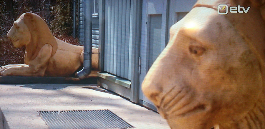 Ning lihtsalt teema segamiseks veel üks lõvipaar, mis asus Tihemetsa Metsatehnikumi/Sovhoostehnikumi (Wabariigi aegne Voltveti Metsakool) hoone ees.