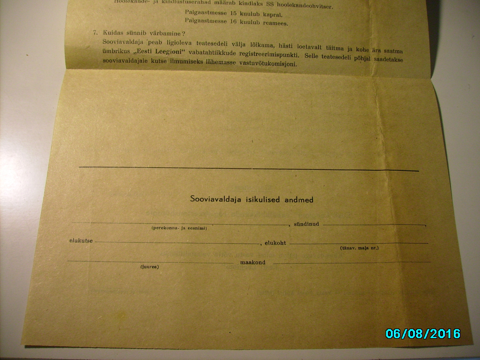 Kas kellelgi on näiteid paberitest/dokumentidest, mis täideti värbamispunktides, a'la kuhu märgiti nimi, elukoht jm?