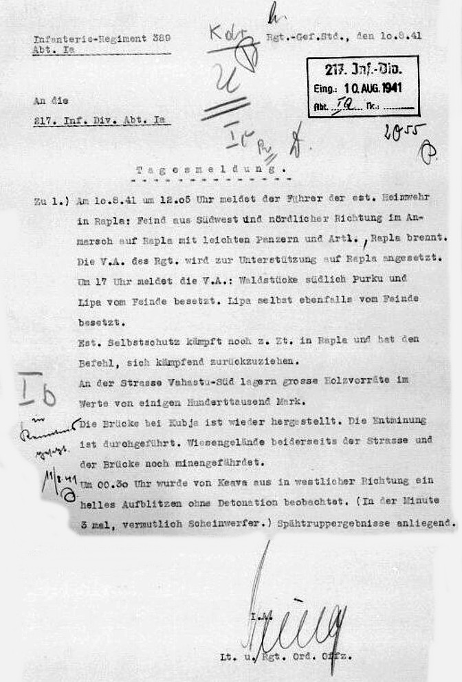 10. augusti ettekanne 217. jalaväediviisi 389. rügemendilt.