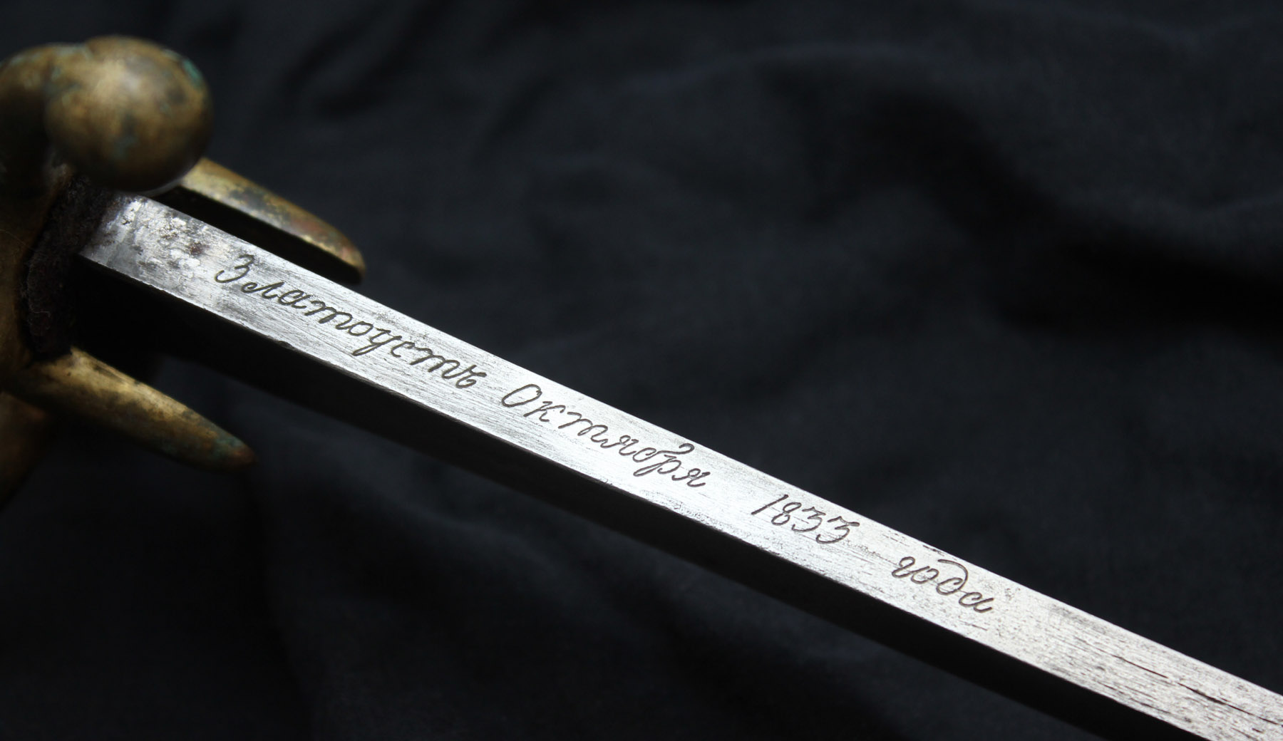 Tegemist on 1833. aasta oktoobris (mudel 1827) Zlatoust relvatehases valmistatud ratsaväe mõõgaga.