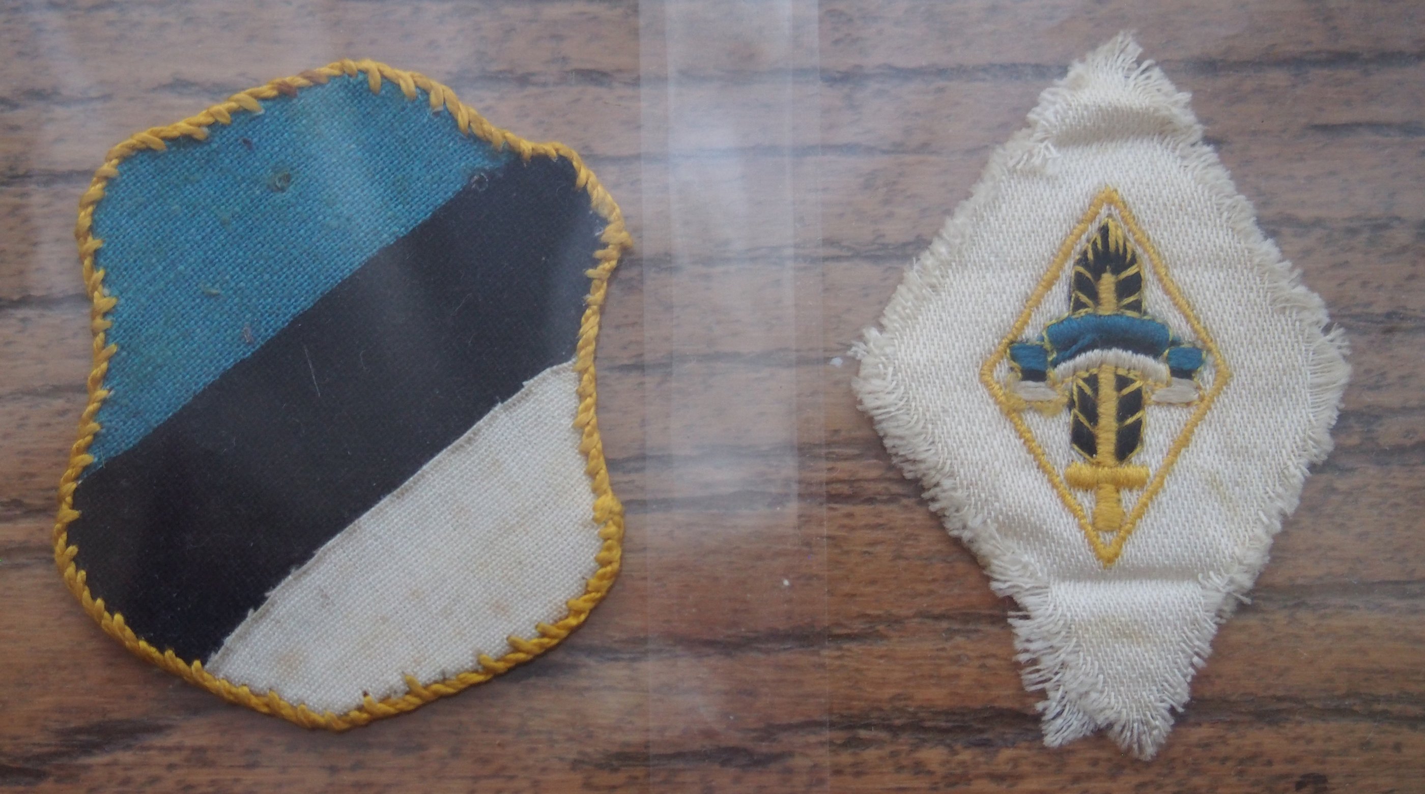 Viimati postitatud artiklis peaks olema juttu 5. piirikaitserügemendi II pataljonist, mis formeeriti Viljandimaa meestest ja kõnealused kilbid peaksid olema sellised nagu mu lisatud pildil. Konkreetne kilp kuulus 5. PKR II pataljoni võitlejale Jaan Järvistele ja taustal olevatel perioodifotode väljalõigetel on samuti sama pataljoni meeste varrukad koos kilpidega.