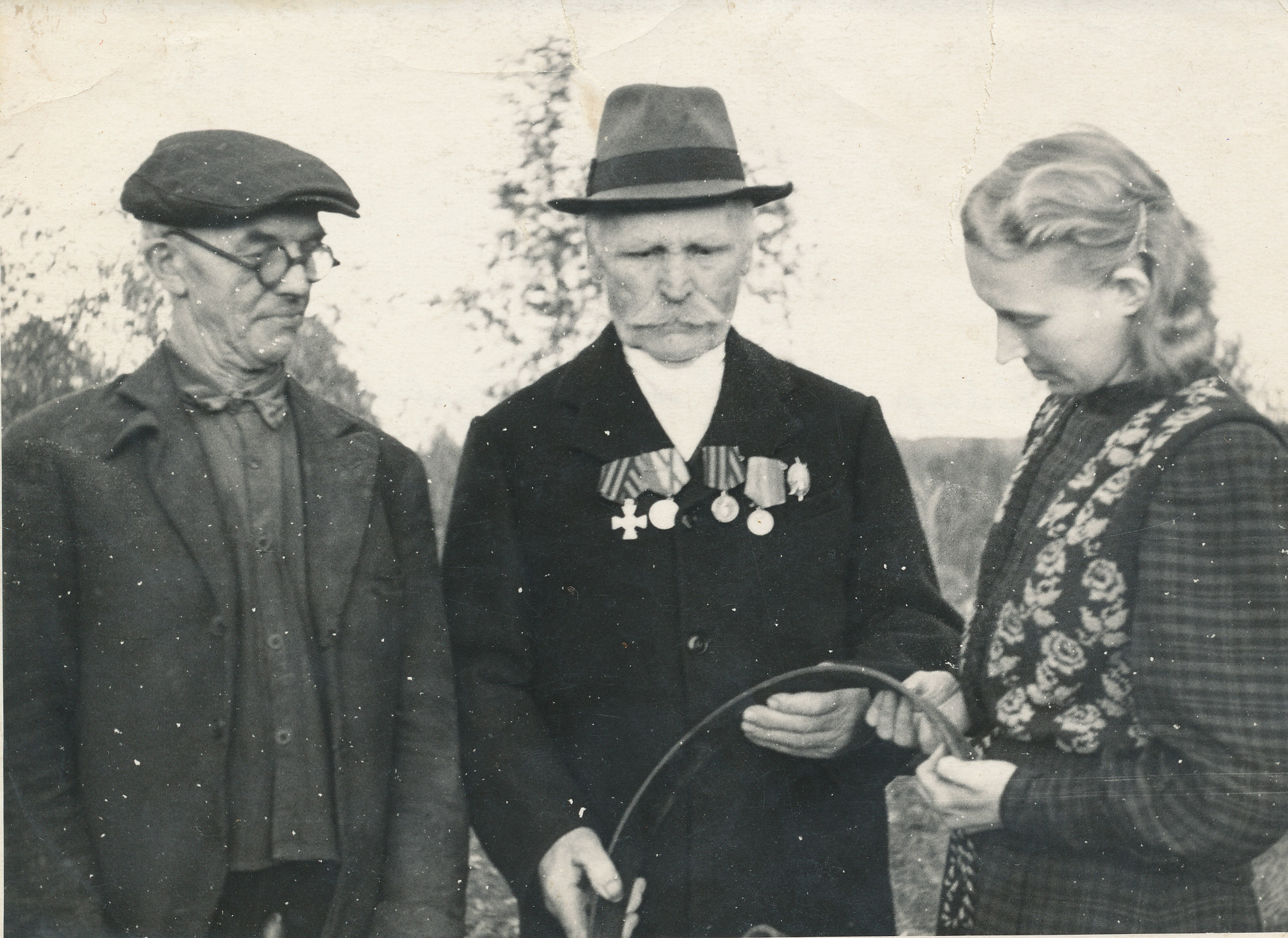 Muis-i kaudu Võrumaa Muuseumis: " Kallas, Vidrik; Verrev, Friedrich; Tamsalu, Juta." Pilt tehtud viiekümnendatel-kuuekümnendate alul.