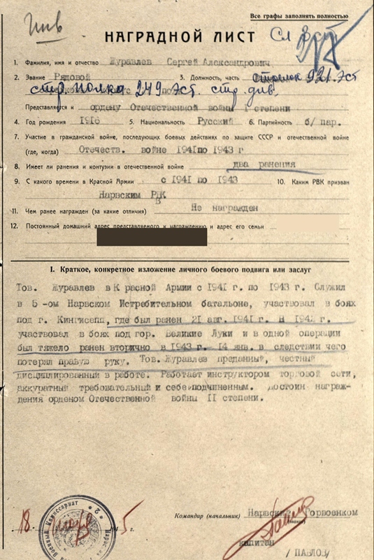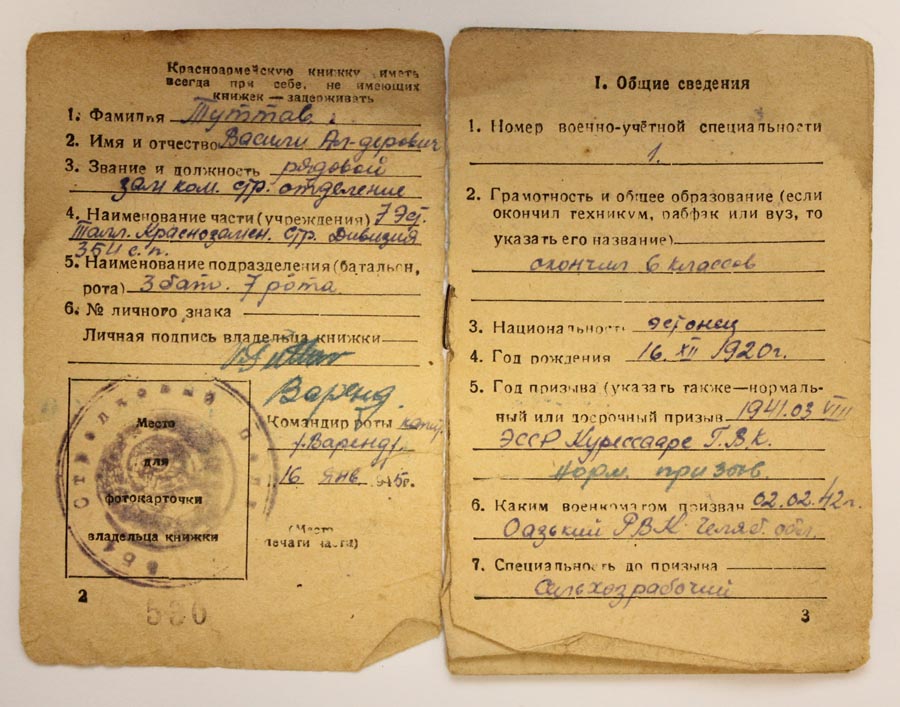 7. laskurdiviisi 354. laskurpolgu III pataljoni 7. roodus teeninud Vassili Tuttava "Vapruse medal" koos dokumendiga. Medal antud Velikije Luki lahingute eest. Oma Laskurkorpuse komplekte uurides avastasin, et 354. polgu 7. roodus on teeninud ka Ermi Littover ja Ludvig Graf, kelle autasud ma siia teemasse juba varem olen postitanud ning kes said samuti oma medalid Velikije Luki lahingute eest.