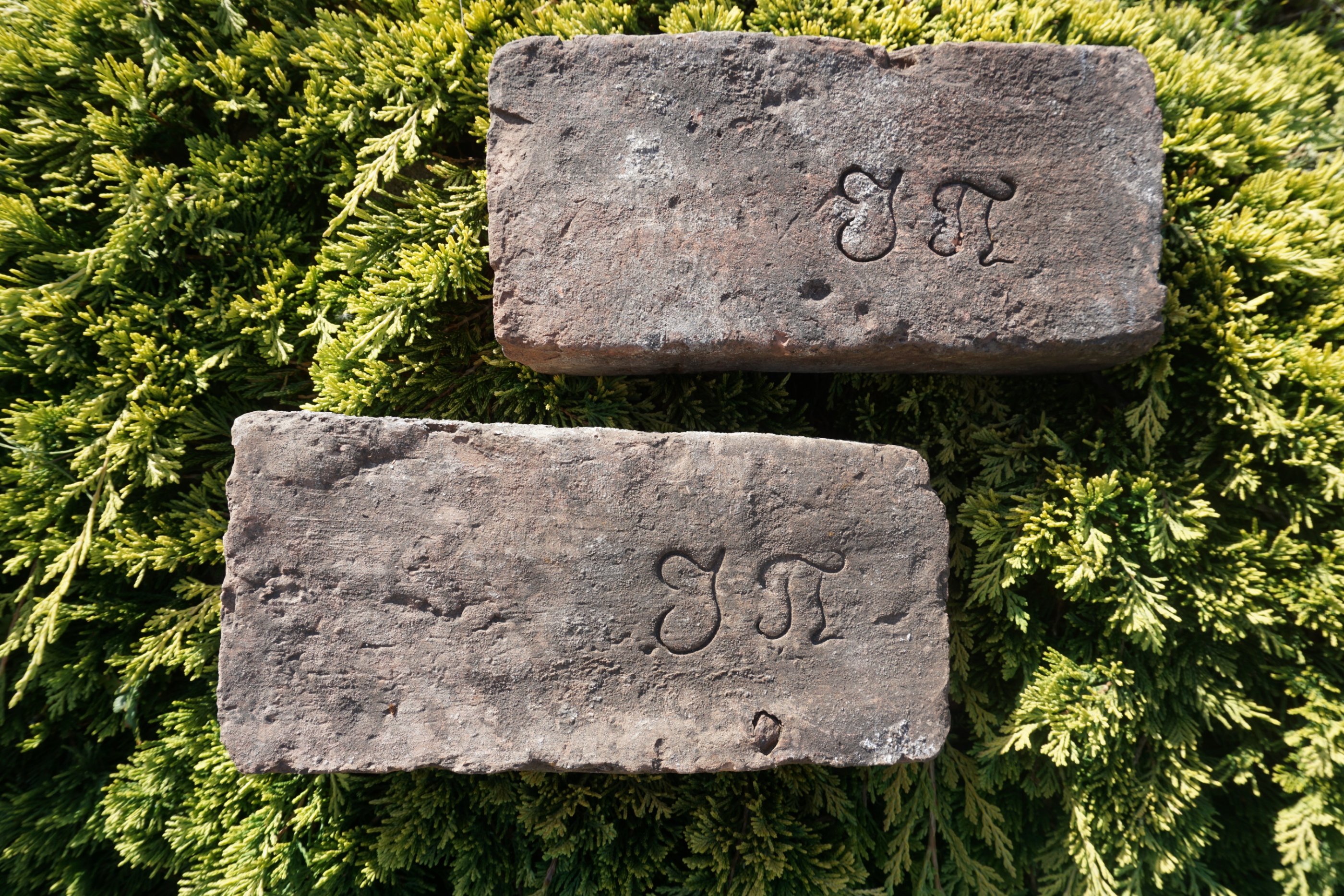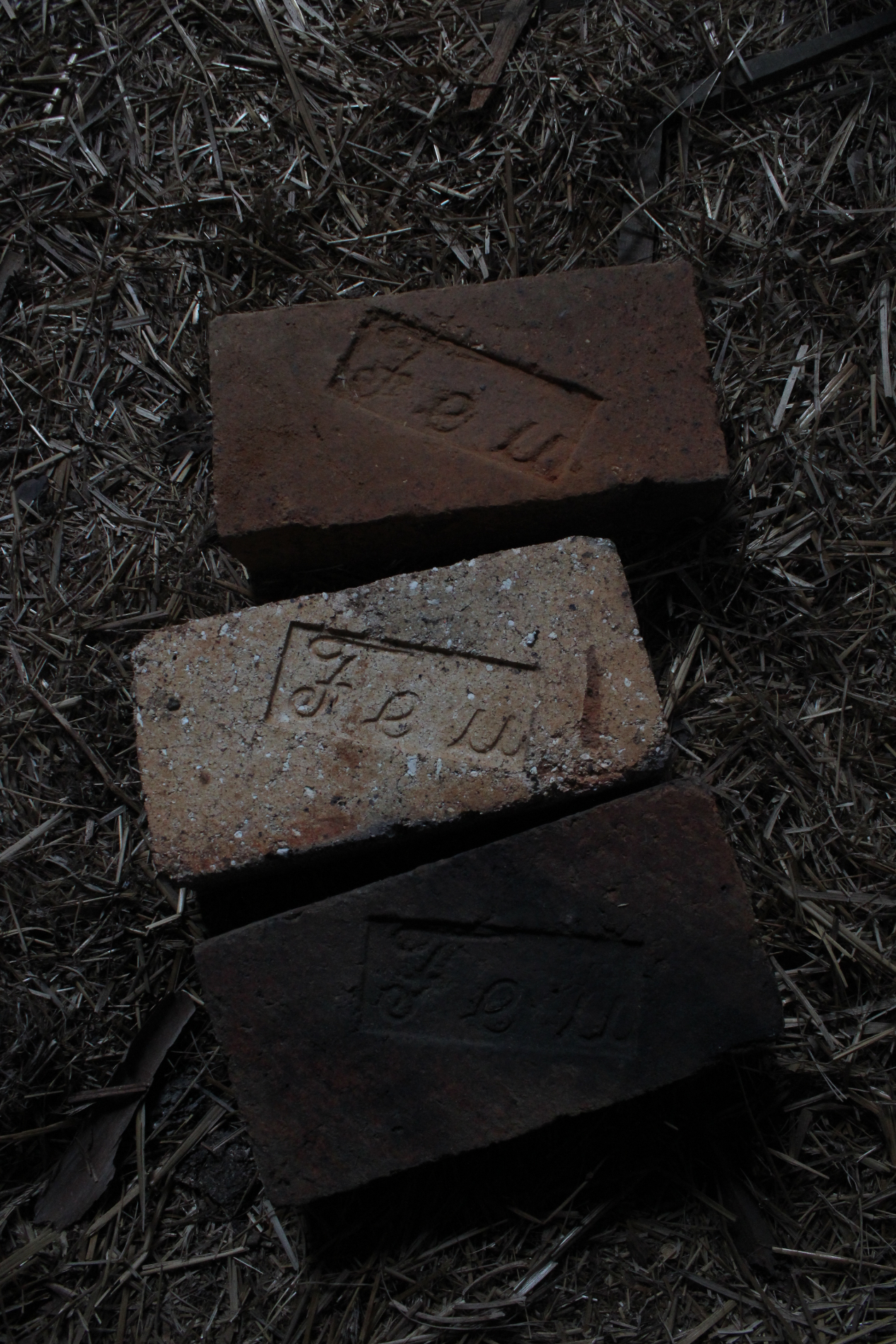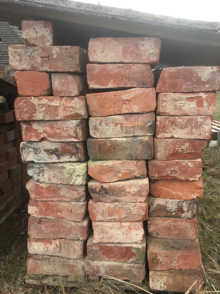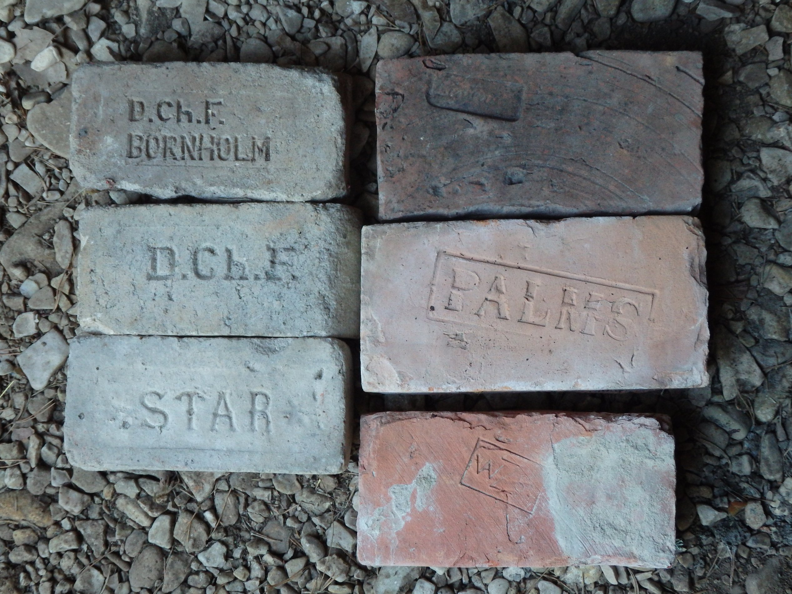 Abja linavabriku korstna kivid. Olla 7 eri mõõtu, kõik vastavalt nummerdatud.