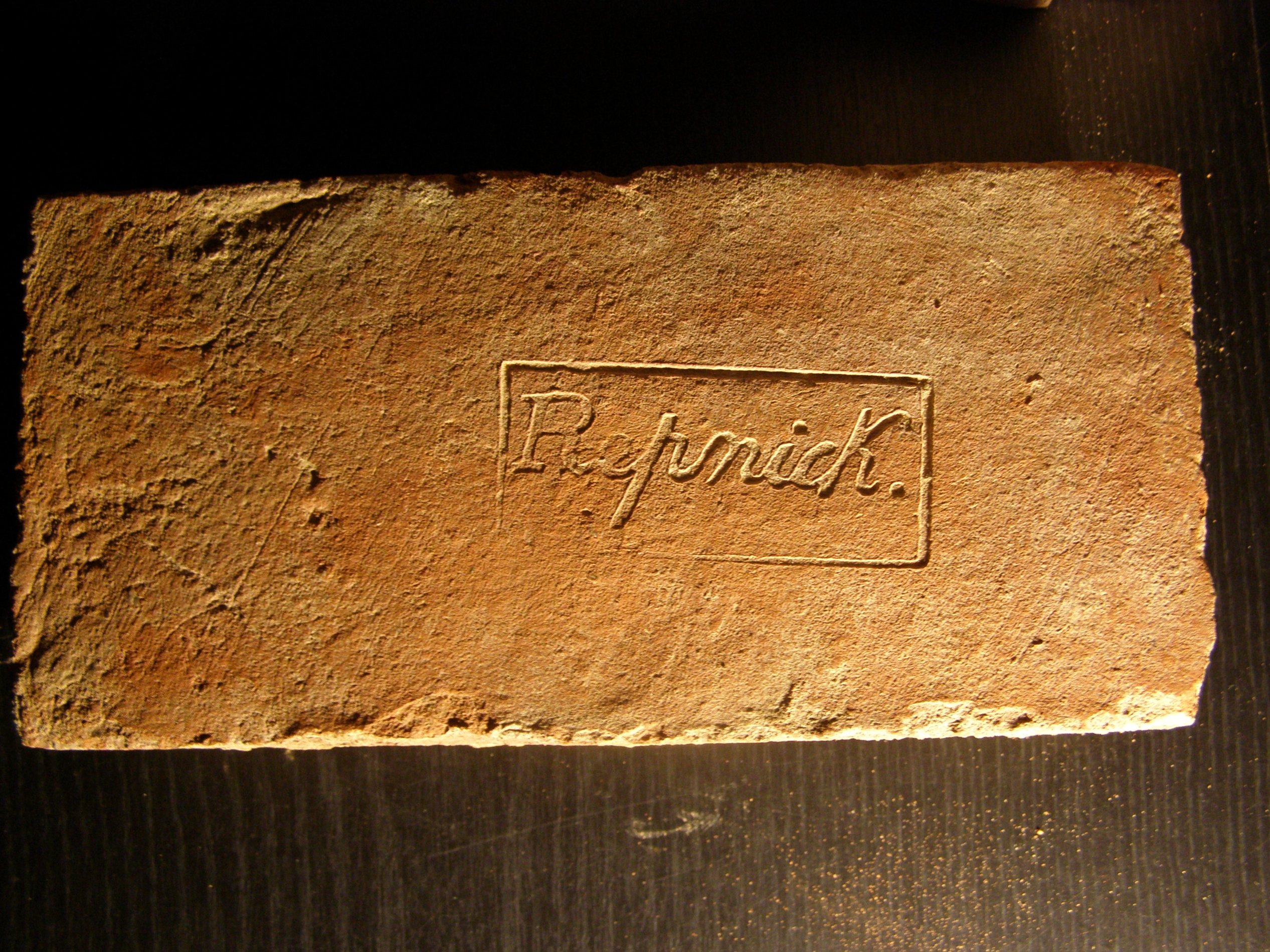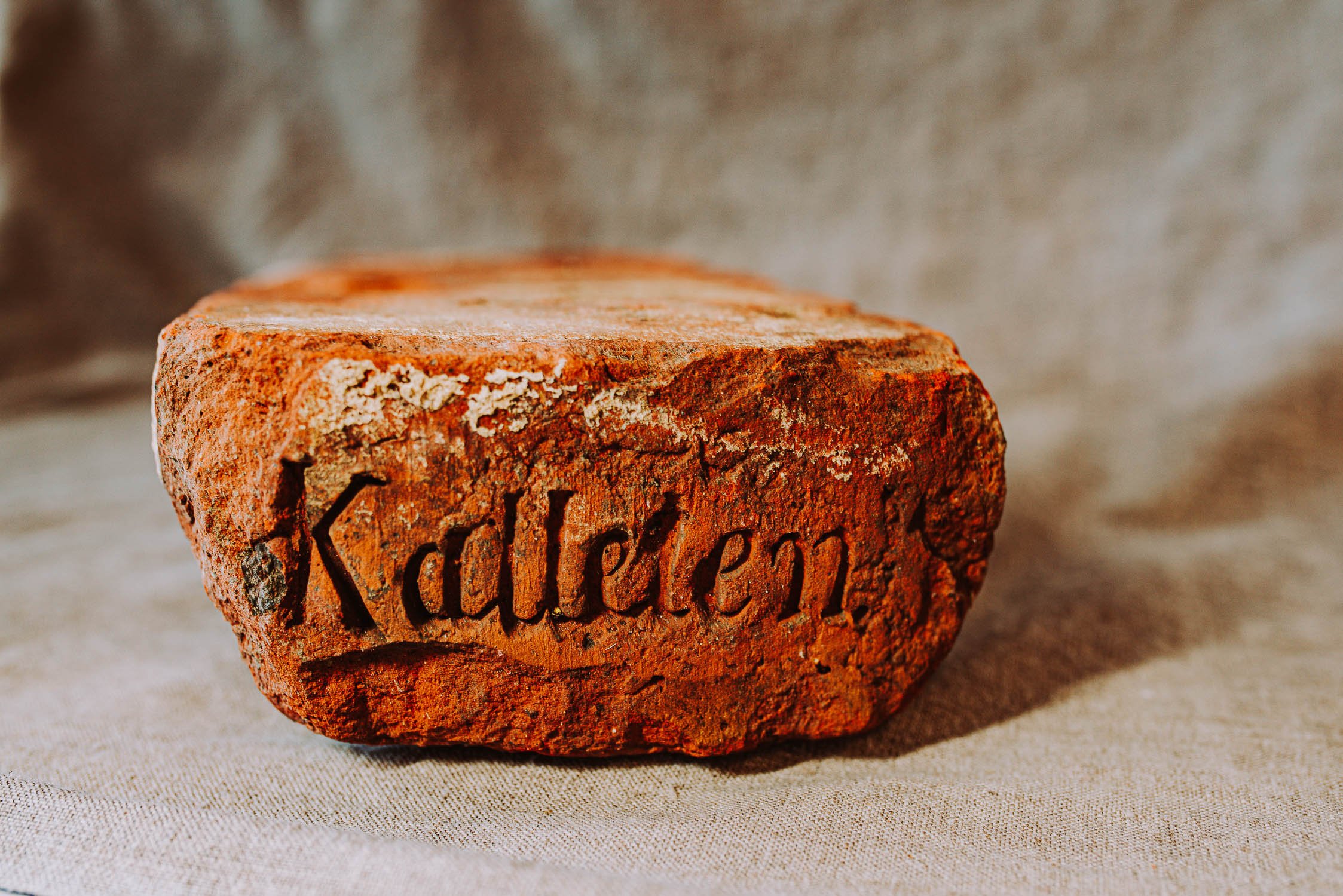 This is a red brick from Kalēti village (Kalleten), Kalēti parish, Priekule region, Kurzeme, where there was a kiln nearby.