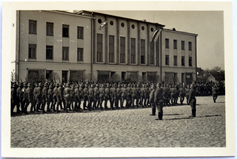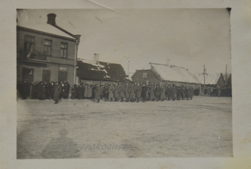 Mõlemad pildid tehtud Rakvere keskväljakul.Sakslased teevad rivi endise kangapoe Tekla ees,hetkel seal Seb-pank.Teine Rakvere esimene kaitseliit Matsoni maja ees 1919 aastal.Neid pilte kogus nüüd 2 eri nurkade alt võetuna.