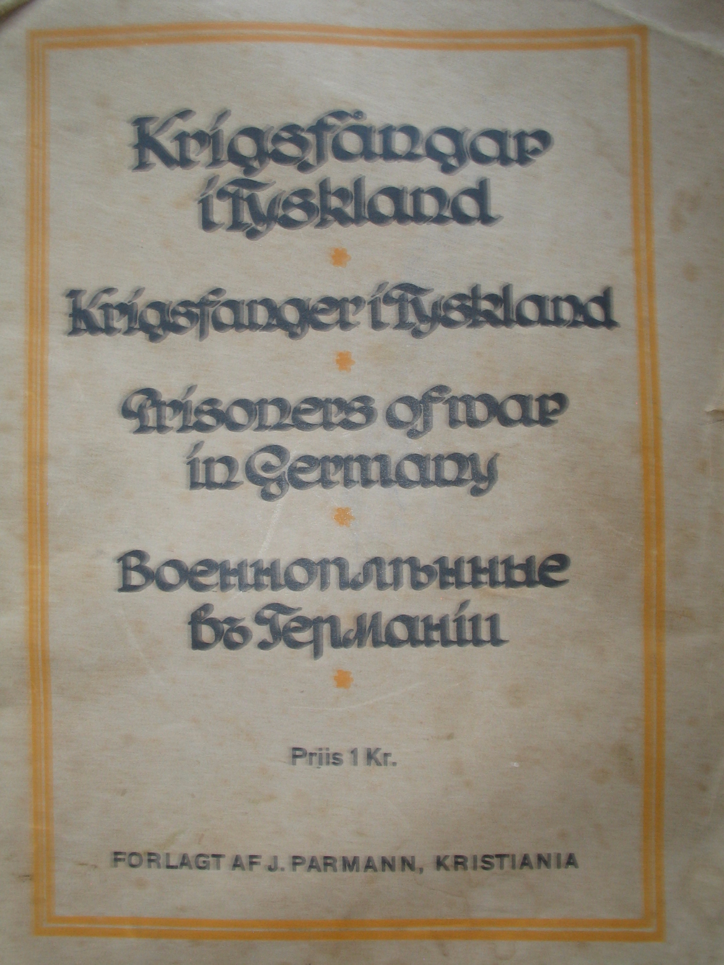 Mul on miskine 1.MS sõjavangidest pajatav fotoraamat: "Krigsfångar i Tyskland" / af dr. A.Röper / forlagt af J.Parmann, Kristiania. Norra/taani/inglise/venekeelne eessõna, 192 pilti erinevatest rahvustest (peamiselt inglased, prantslased, venelased aga ka muud) sõjavangide elust Saksamaa "sanatooriumites". Tundub olevat mingi propagandateos vangide elust-olust Saksamaa erinevates laagrites. On keegi midagi sellist kohanud?