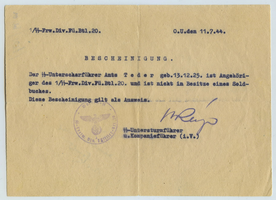 Ega ma lihtsalt nurisemise pärast ei nurisenud. Selle seeria ülesvõtetel jookseb läbi ka Uscha. Ants Teder aga ta lahkus 11. juulil rindelt kusagile tagalasse. Minek olevat olnud veel nii kiire, et auto juba ootas ja kuna ei olnud aega Soldbuch'i staabist üles otsida siis anti pihku ajutine tunnistus, mis kehtis SB asemel.