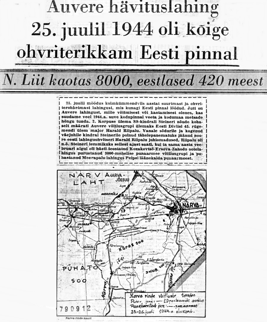 Ajaleheartikkel 1979. aastast - Auvere lahingu 35 aastapäeva puhul