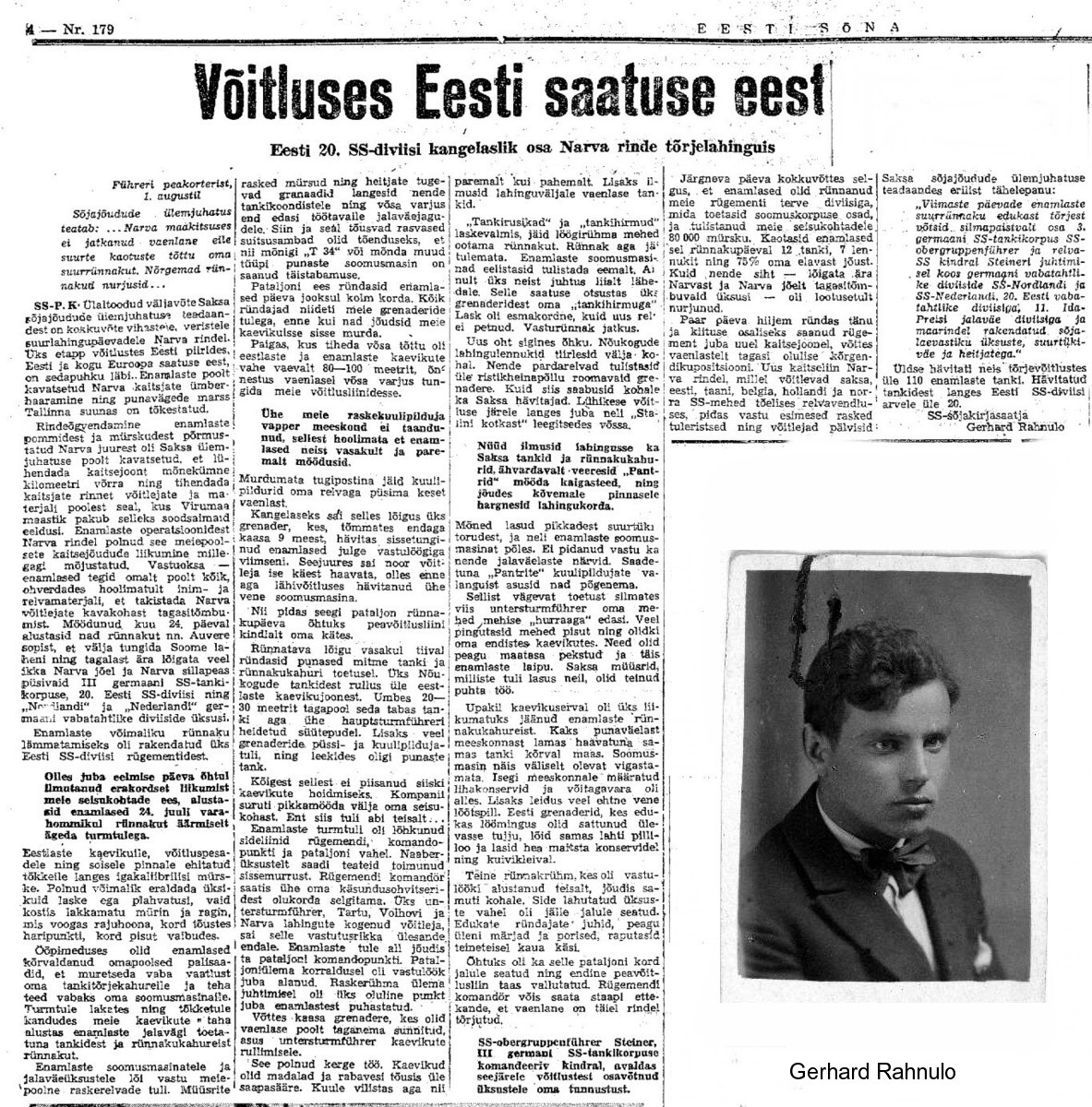 Sõjakirjasaatja Gerhard Rahnulo lahingukirjeldus.