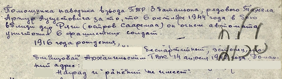 Autasu saadud Saaremaa lahingutes.