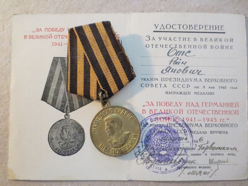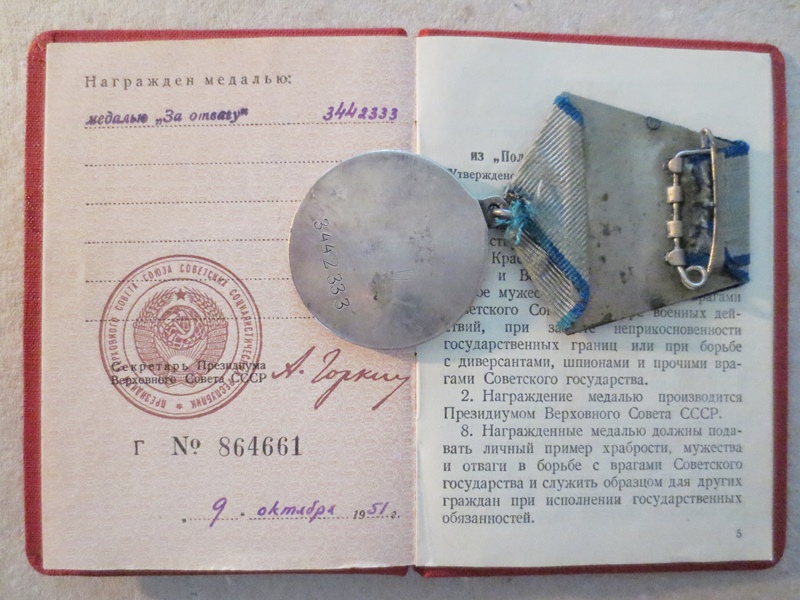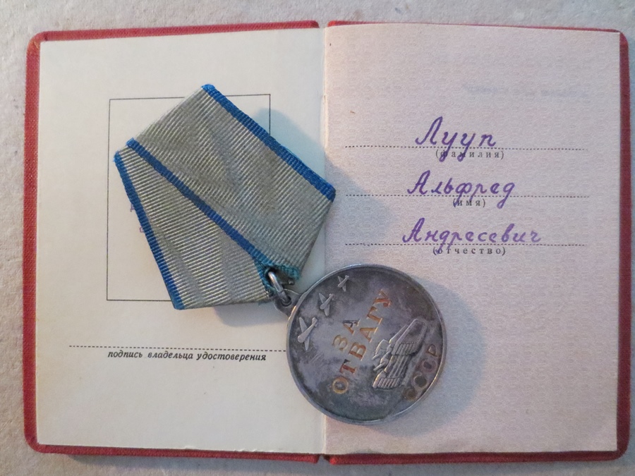 Haruldane U kõrvaga Vapruse medal koos dokumendiga. Alfred Luup sai medali aastal 1951.