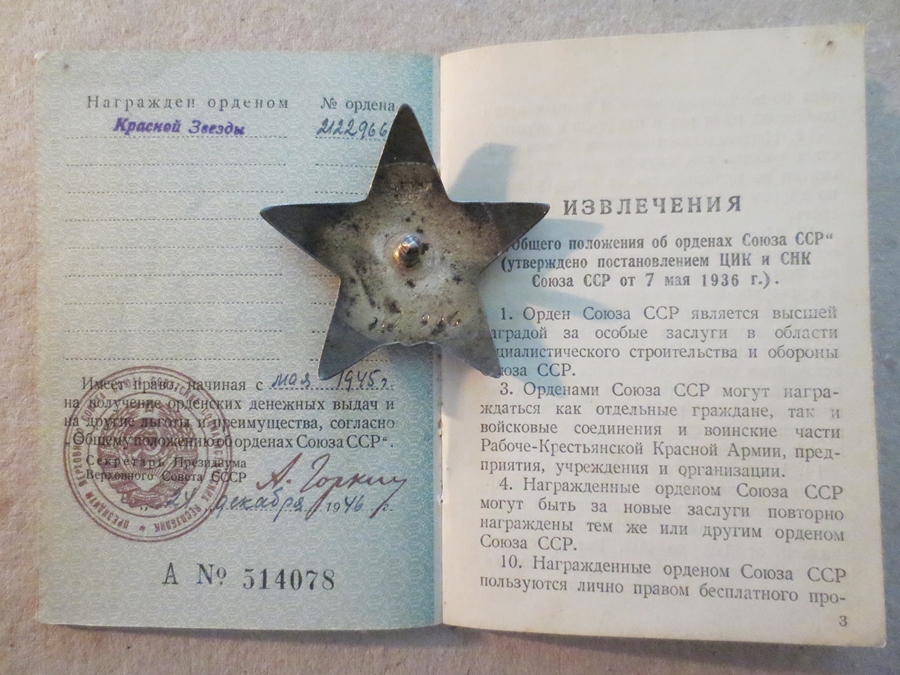 Kasahhi NSV, kolhoosis, Eesti korpus. Punatäht saadud Läti NSV lahingutes.