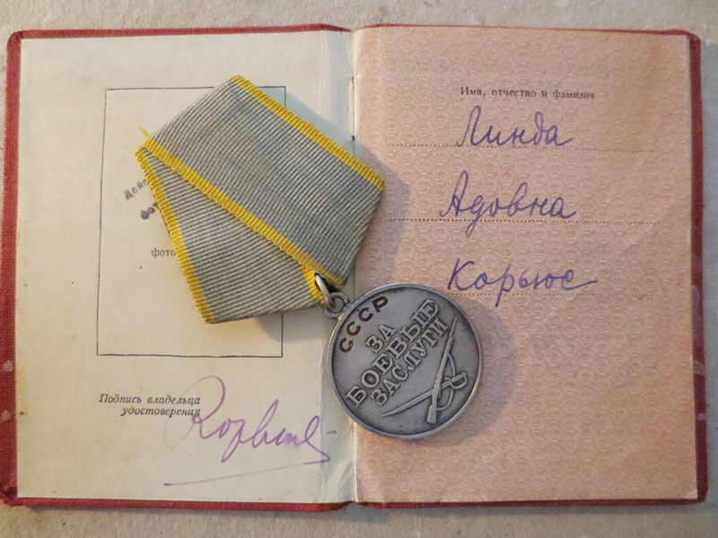 Lahinguteenete medal saadud Narva jõe pealetungilahingutes, kus parandas vaenlase tugeva tule all sideliine ja tagas katkematu side.