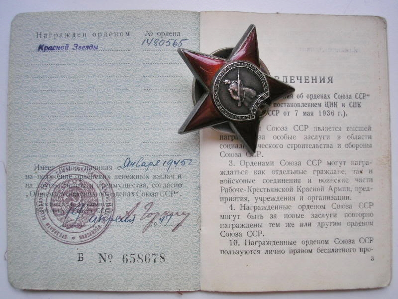 Laskurkorpuse 368. Kaardiväe Laskurpolgu reamehe Artur Tammjala Punatähe orden.