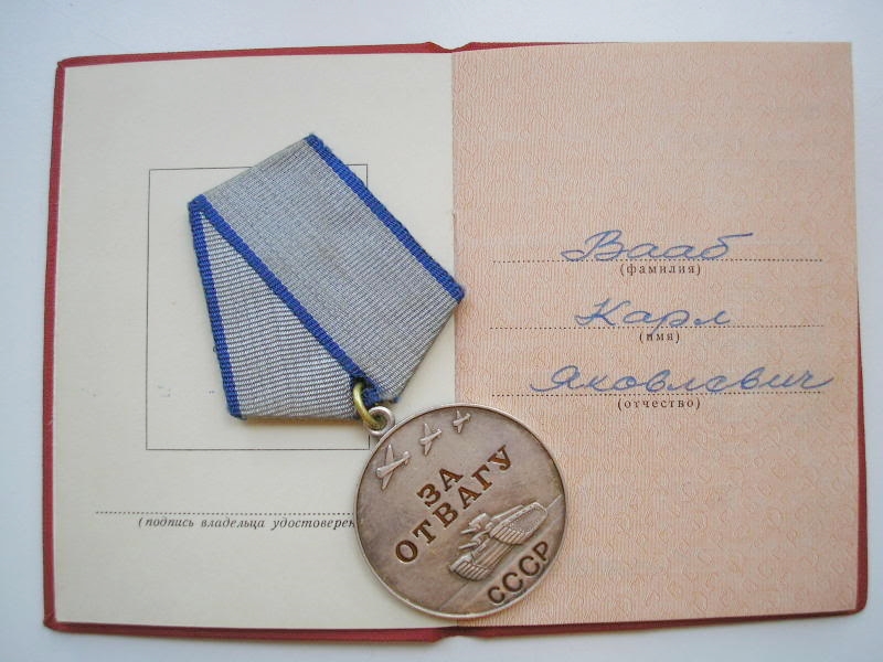 Vapruse medal KARL VAAB nimele. Samuti on arvatavasti medal tagantjärele kätte saadud.