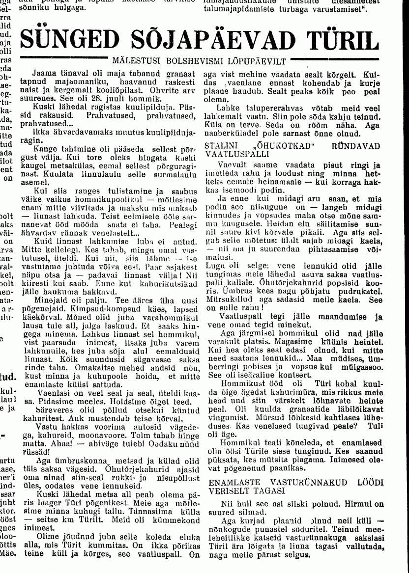 "...Nimekirja järgi otsustades veeti Türilt Venemaale 60 kilohertsine kõrgsagedusvastuvõtja, Marconi saatja juhtkristall, katoodtorud ja mitmesuguseid mõõteriistu (lainemõõtja, ampermeetrid, voltmeetrid) koguväärtuses 29 200 rubla.
