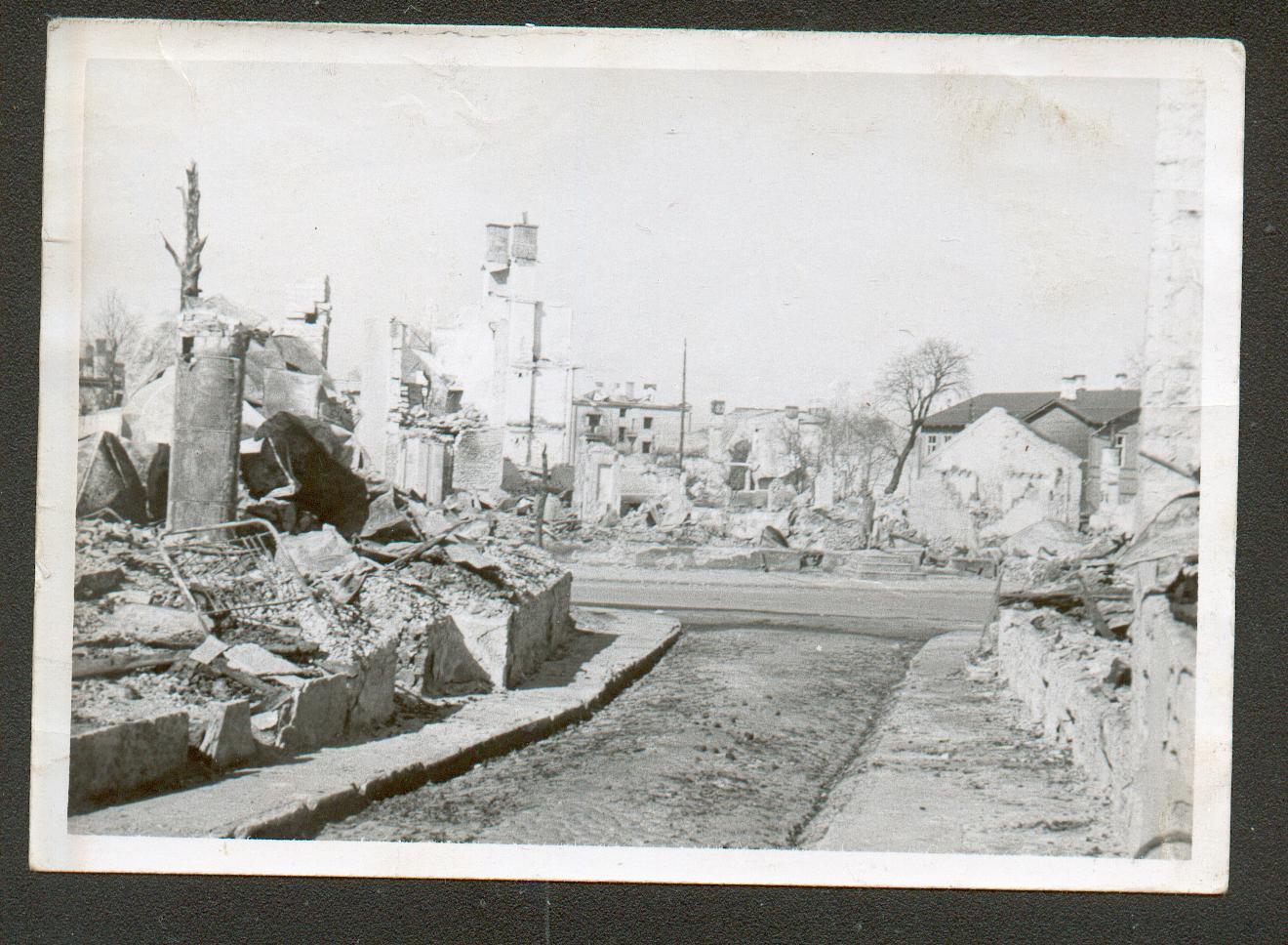 Varemete kustutamine Tallinnas Vana-Posti ja Suur-Karja tänava nurgal pärast märtsipommitamist.