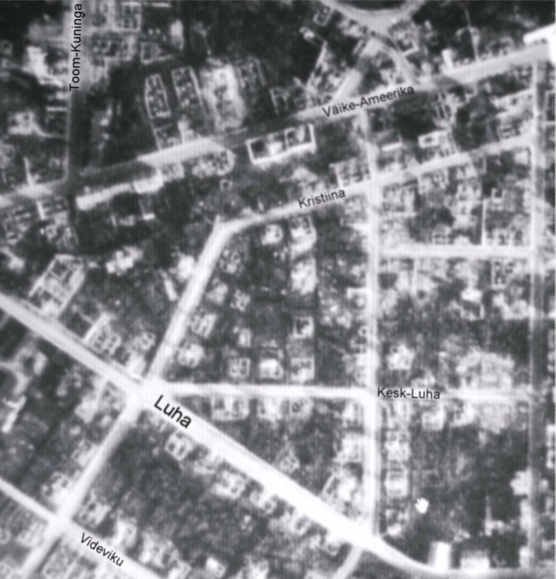 3) Kastani ja Kuperjanovi tänava nurk 1944. aastal. Praegu on siis tänavanurgal Korea restoran ja edasi korterelamu mille all on Feenoksi alkoholikauplus ja Humana pood. Taga paremal paistab veetorn. Tänapäeval varjaksid puud selle vaate isegi Feenoksi puudumisel...