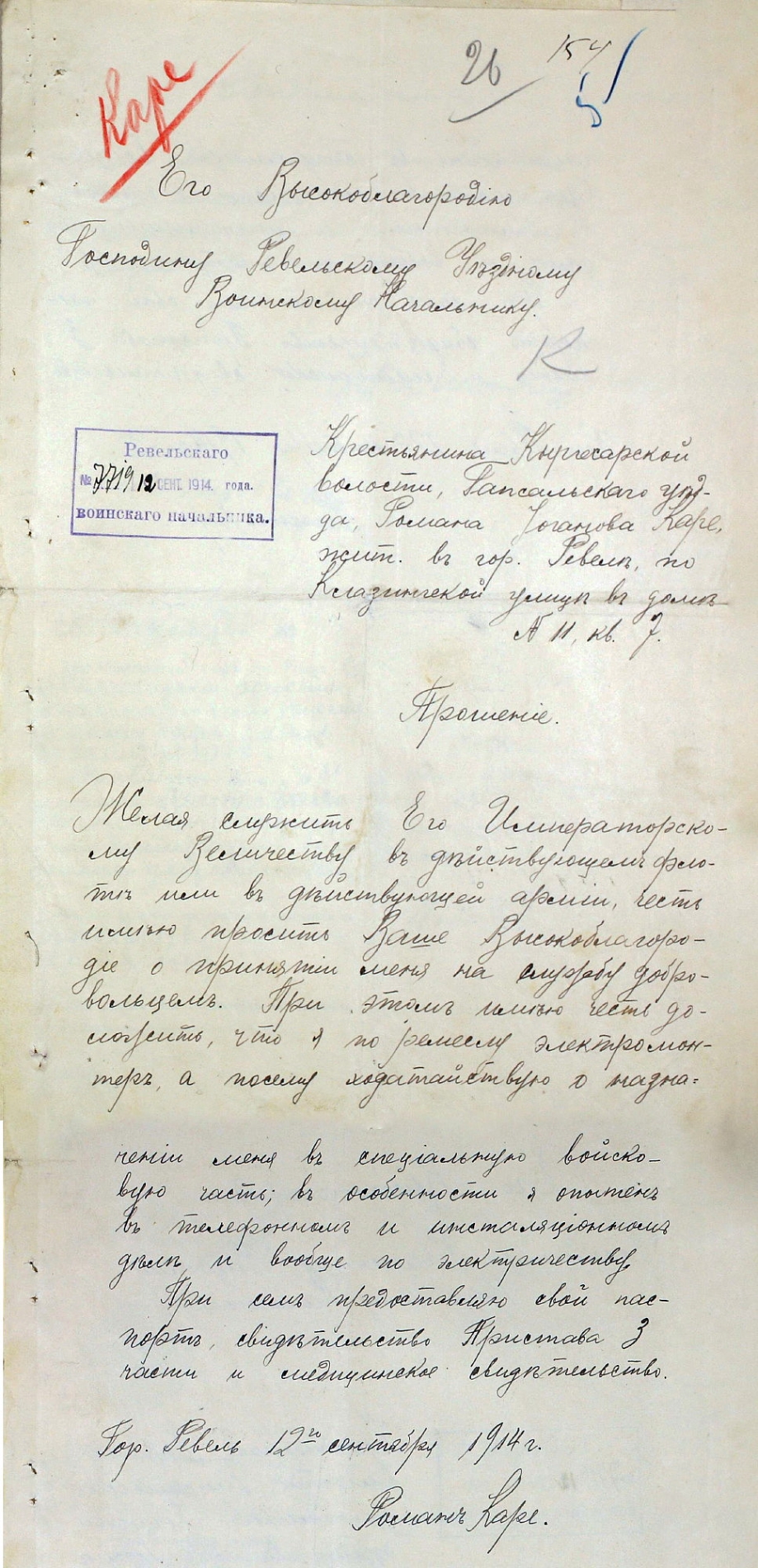 Avaldus vabatahtlikuna väeteenistusse astumiseks