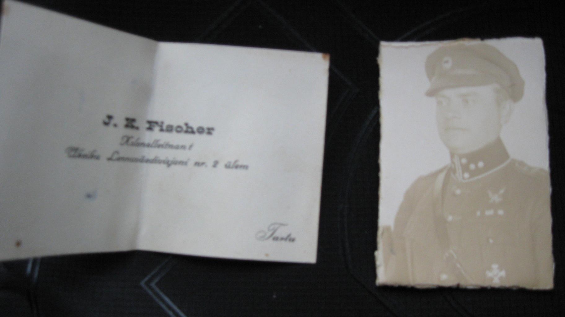 Eile tuli ühte vana fotot raamist eemaldades päevavalgele veel üks foto koos visiitkaardiga "J.K. Fischer, Kolonelleitnant, Üksiku Lennuväedivisjoni nr. 2 ülem". Teenistuskäik: http://prosopos.esm.ee/index.aspx?type=1&id=18811