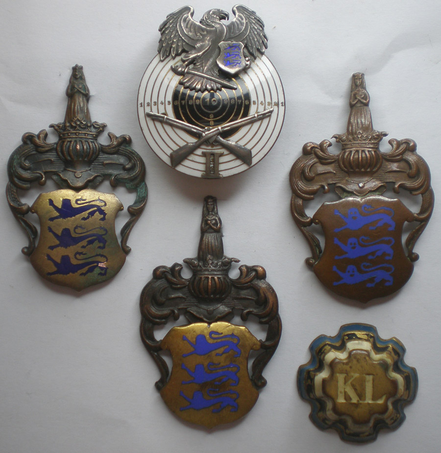 Heinrich Raudla Kaitseliidu II klassi laskur, Tallinna maleva pagunimärgid ja KL mütsimärk.