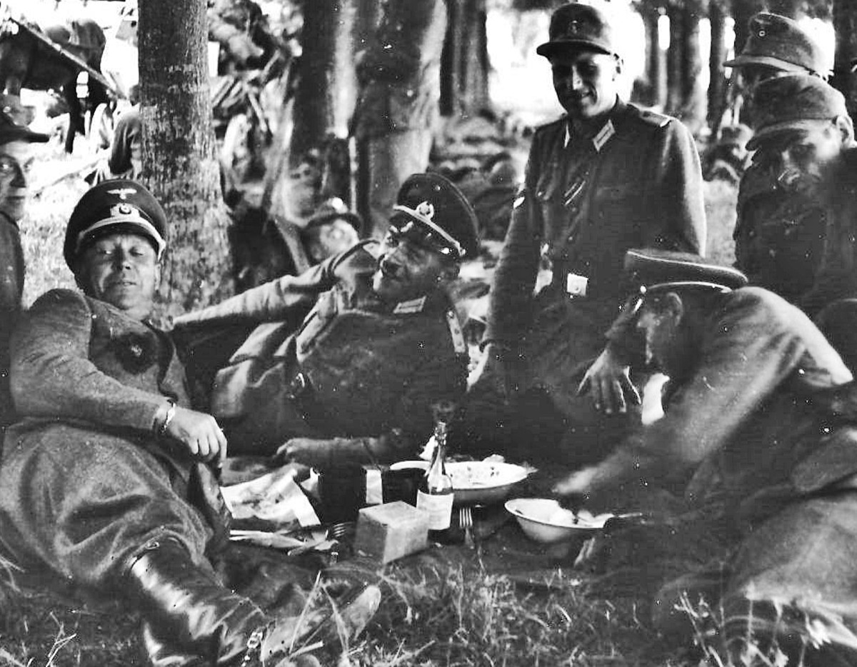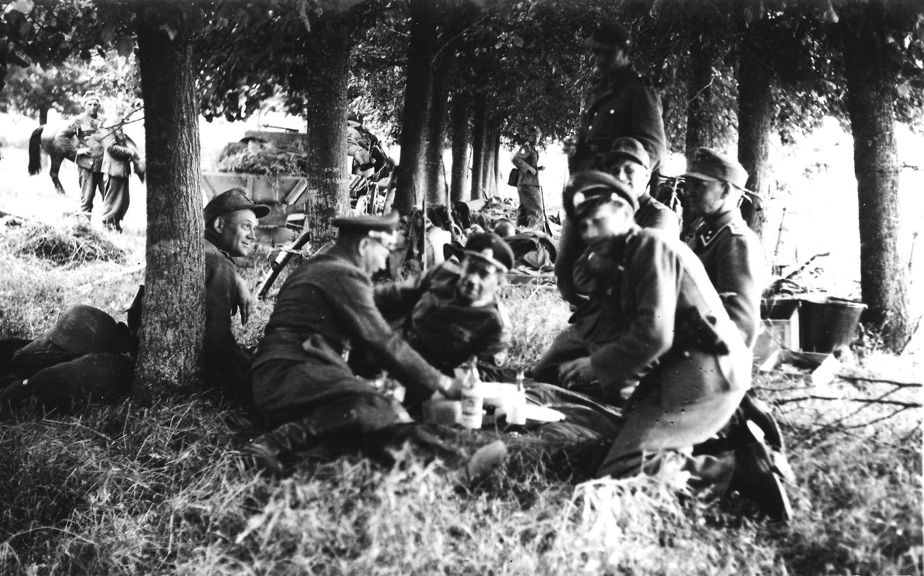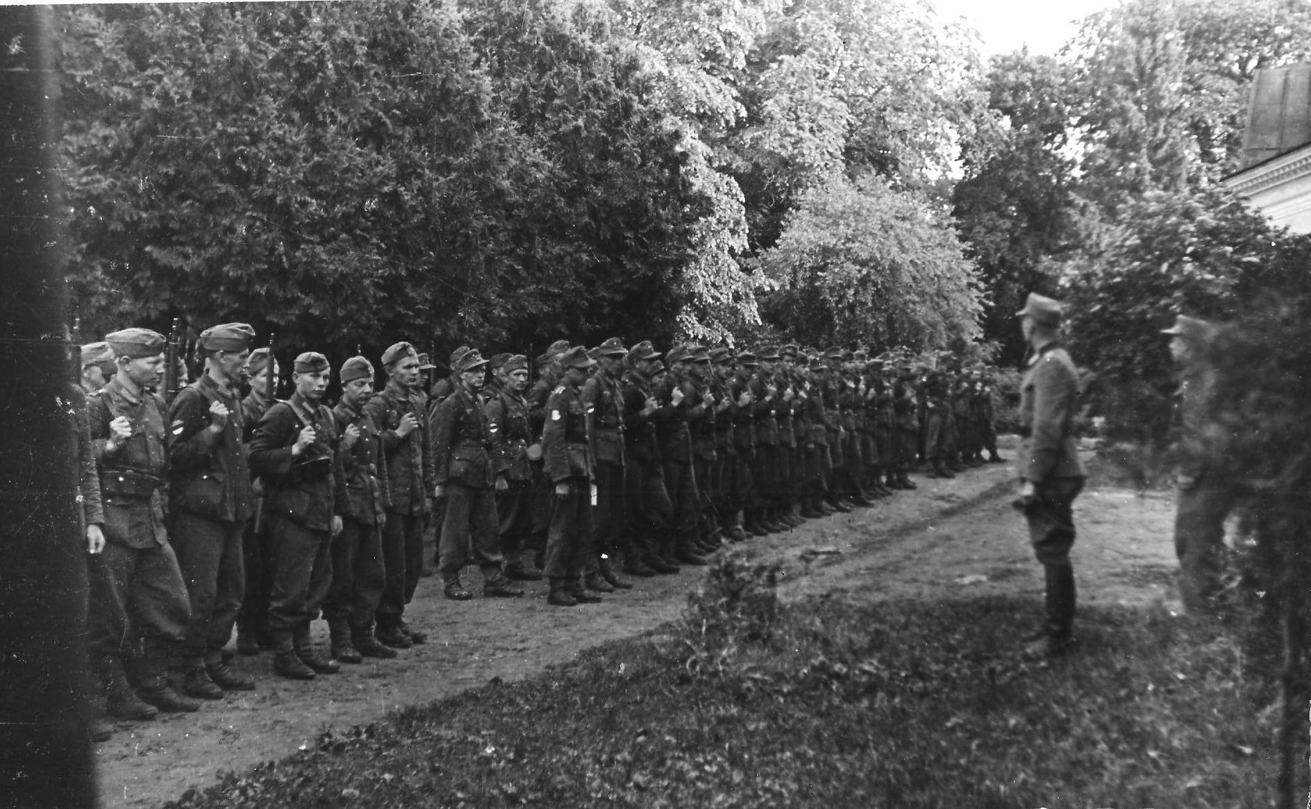 Prillidega ja kaabus on seal vist Oskar Angelus. Kes see ohvitser seal on? Kas miski SD kompanii, mis otsapidi alluvuse vahekorras ka Angeluse alla jõudis?