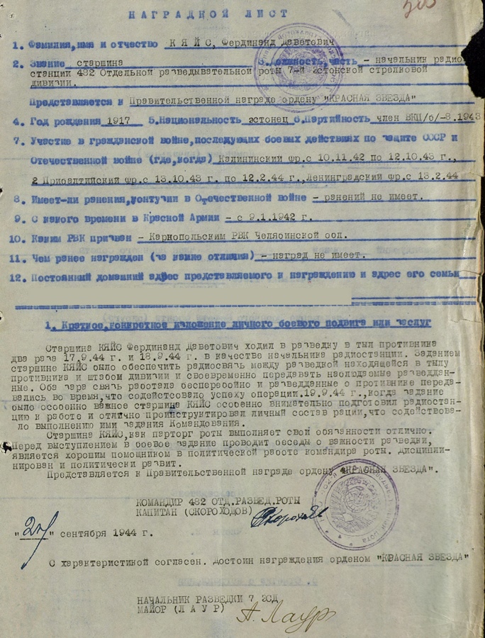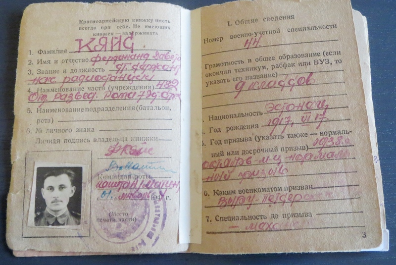 Vanem Käis, 7. Laskurdiviisi 482. Üksiku luureroodu raadiojaama ülem. Punatähe ordeni ja lahinguteenete medali kavaler. Kahjuks saab hetkel näidata põhimõtteliselt ainult dokumente, loodame, et autasud ka päevavalgele ilmuvad.