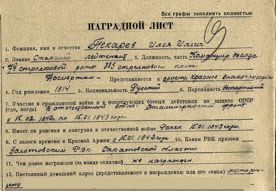 Nüüd korra veel sellest I järgu ordenist, mille ta Luki all sai. Raamatus "Eesti Tallinna kaardiväe laskurkorpuse võitlustee" lk. 74 avaldatud statistika järgi autasustati Velikije Luki lahingute järel kõigest 21 võitlejat I järgu Isamaasõja ordeniga. Võrdluseks võib öelda, et medalit "Vapruse eest" anti välja täpselt 20 korda rohkem - 424 korral.