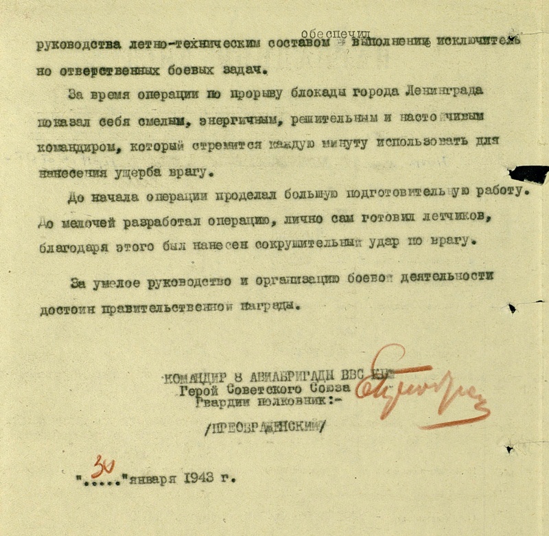Autasustati teda takkajärele 1941.a suvel toimunud Porhovi lahingu eest - autasustamisleht on vormistatud 1943.a dets. ja kinnitatud 1944.a jaan. seisuga.