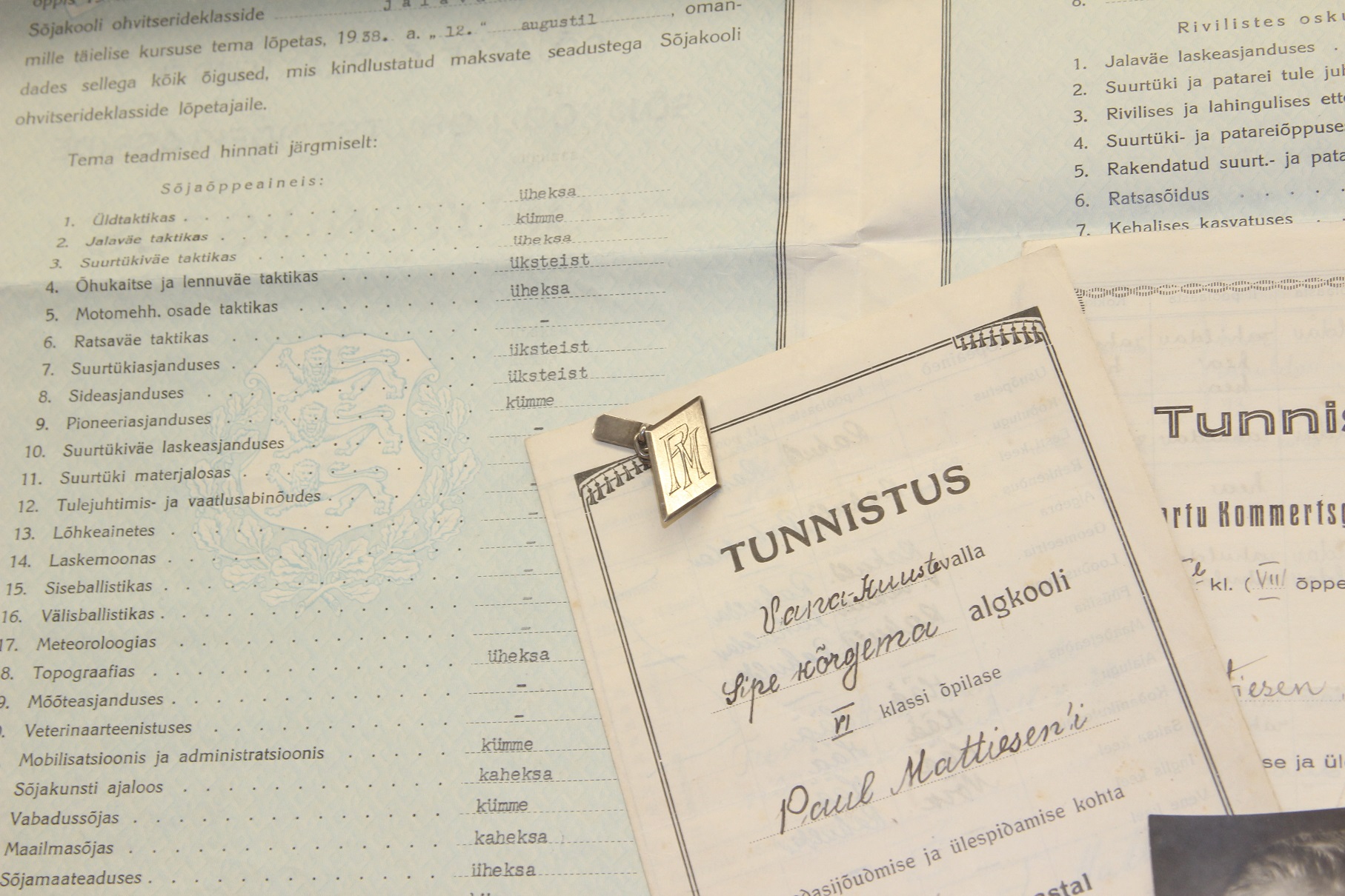 Lisan täiendavat materjali. Esimese foto keskmes näeme Paul Maitlale kuulunud mansetinööpi ja taustaks tema koolitunnistusi ...