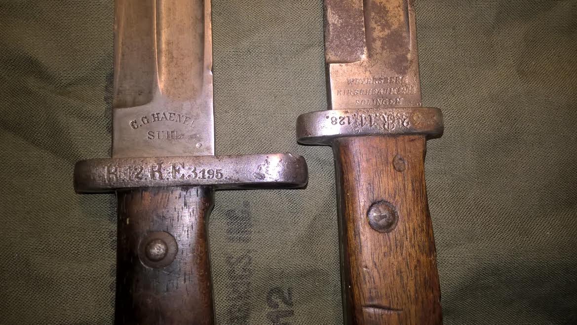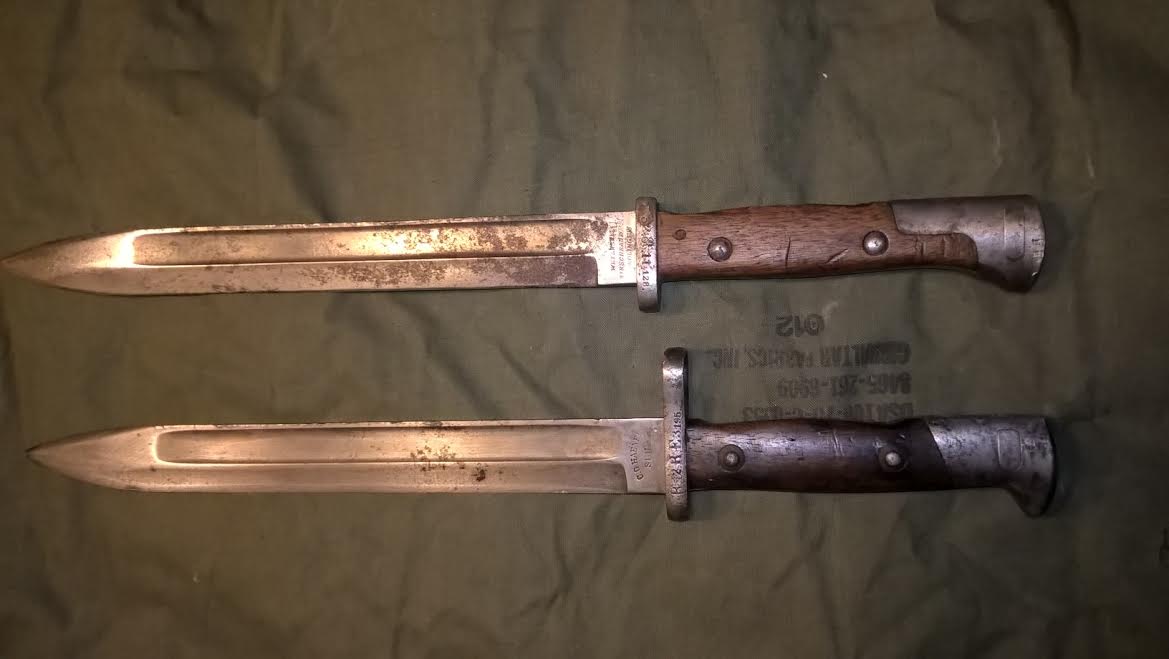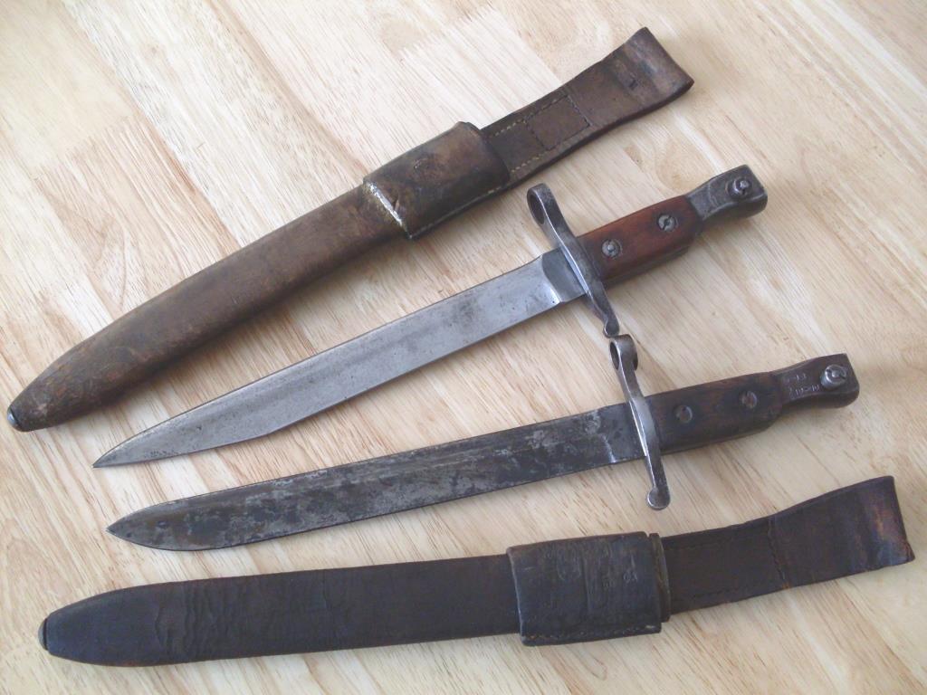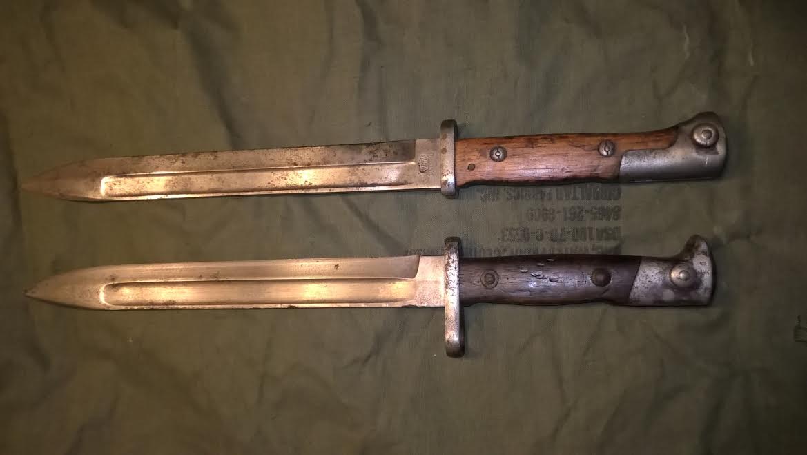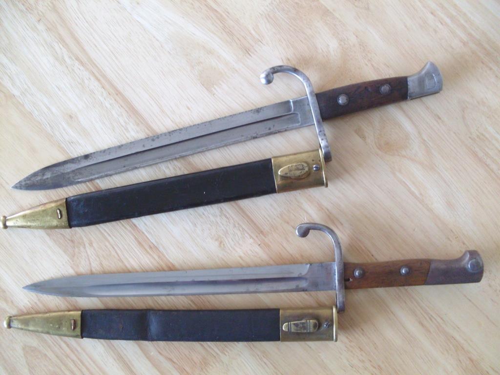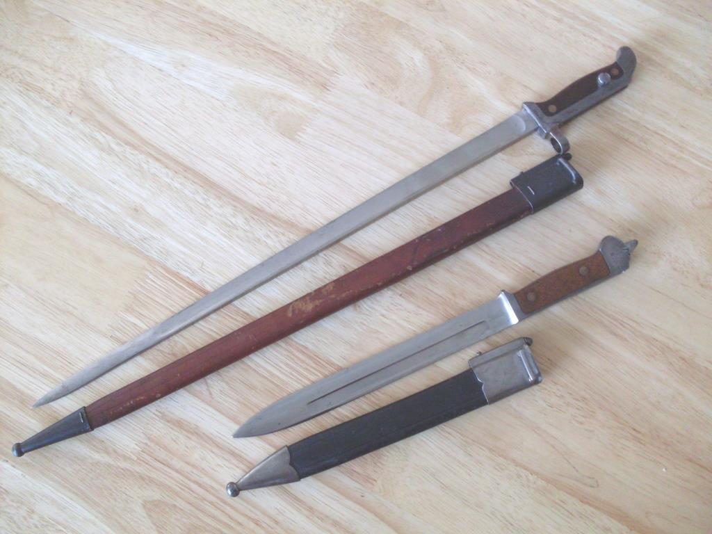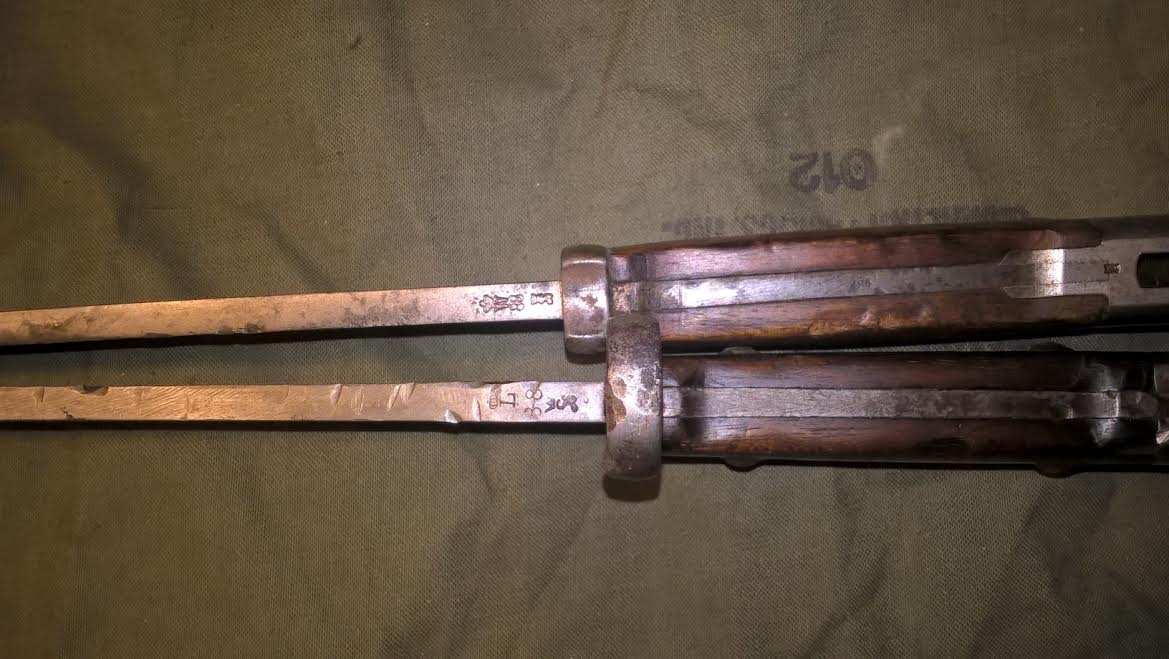 - Kreeka M4: kreeka koopia USA M4-täägist ja jälle USAlt saadud M1 karabiinidele. Robustne vasesulamist tera ja originaali jäljendava nahkseibidest käepidemega tääk (tupp on USA varudest)