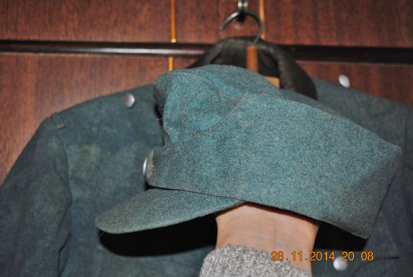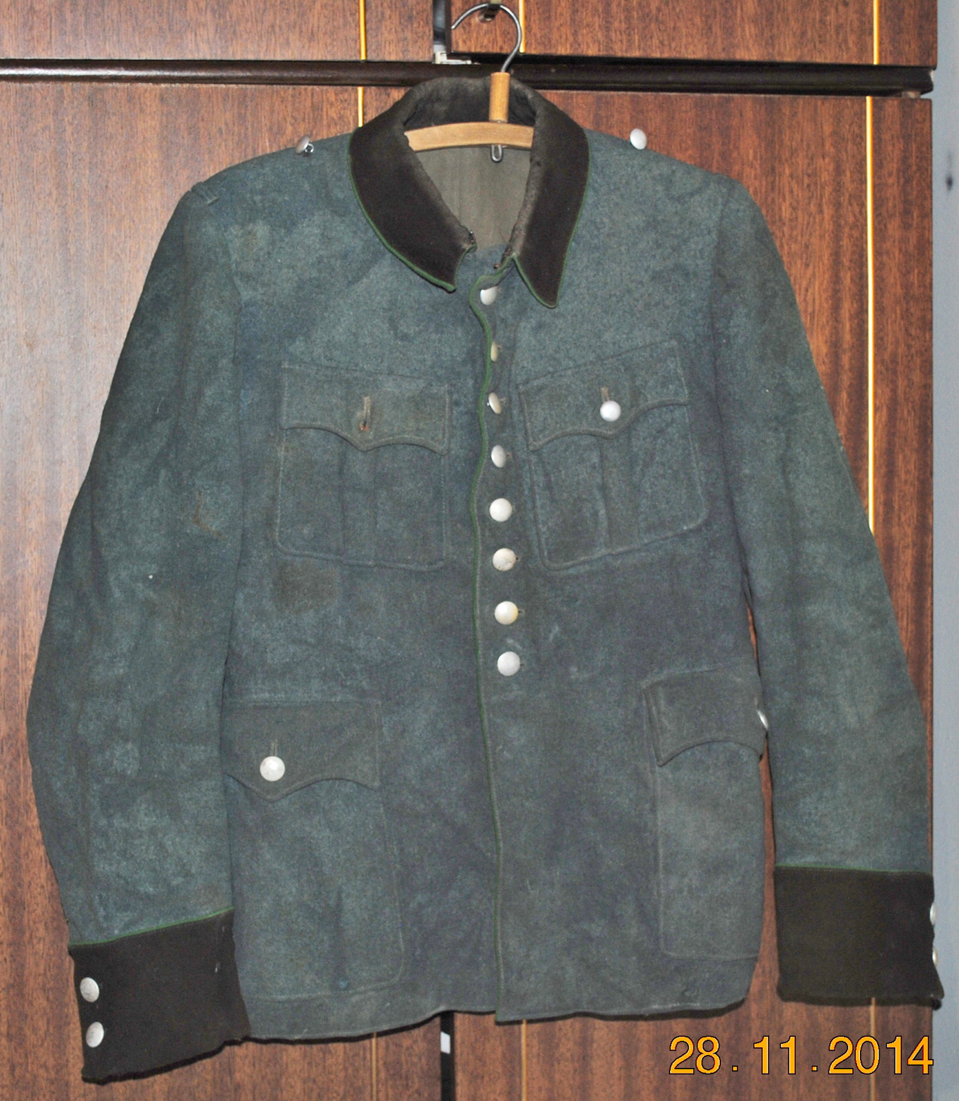 Panin foto illustreerimaks juttu.Jah frents väga kvaliteetse tegumoega.Tempel sees 1941.Krae ja varukaotsad mustjaspruunid kahe nööbiga ja rohelise kandiga ääristatud. Feldmütze ühe nööbiga ja samuti purematta.Isegi mütsimärgi eest harutamisel jäänud niidijuppe on veel näha.